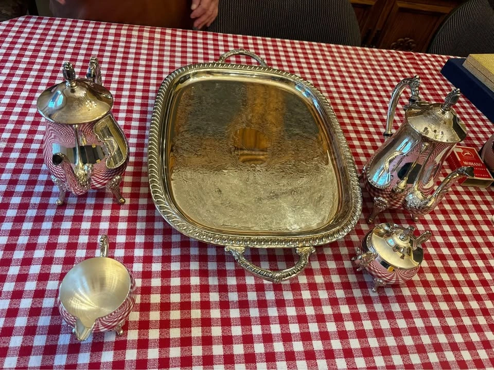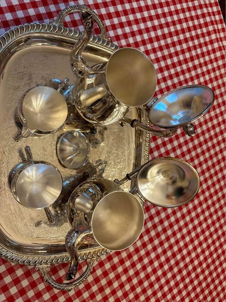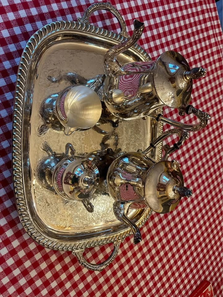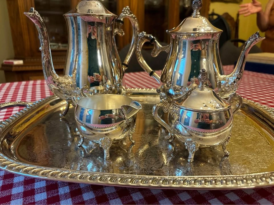 Buy & SellOneida Silver Tea/Coffee Set w/Serving TrayOneida Silver Tea/Coffee Set w/Serving Tray$120no box as is, like new condition silver creamer tea pot coffee pot tray sugarWHERE TO MEETCheck LocationView MapSELLERmel dDownsview685 reviews2 chats·0 favorites·20 viewsSEND CHAT TO SELLERHi mel d! I’m interested in your listing.Hi mel d! I’m interested in your listing.Get the Karrot app to chatSign In to chat