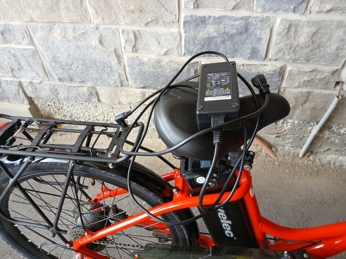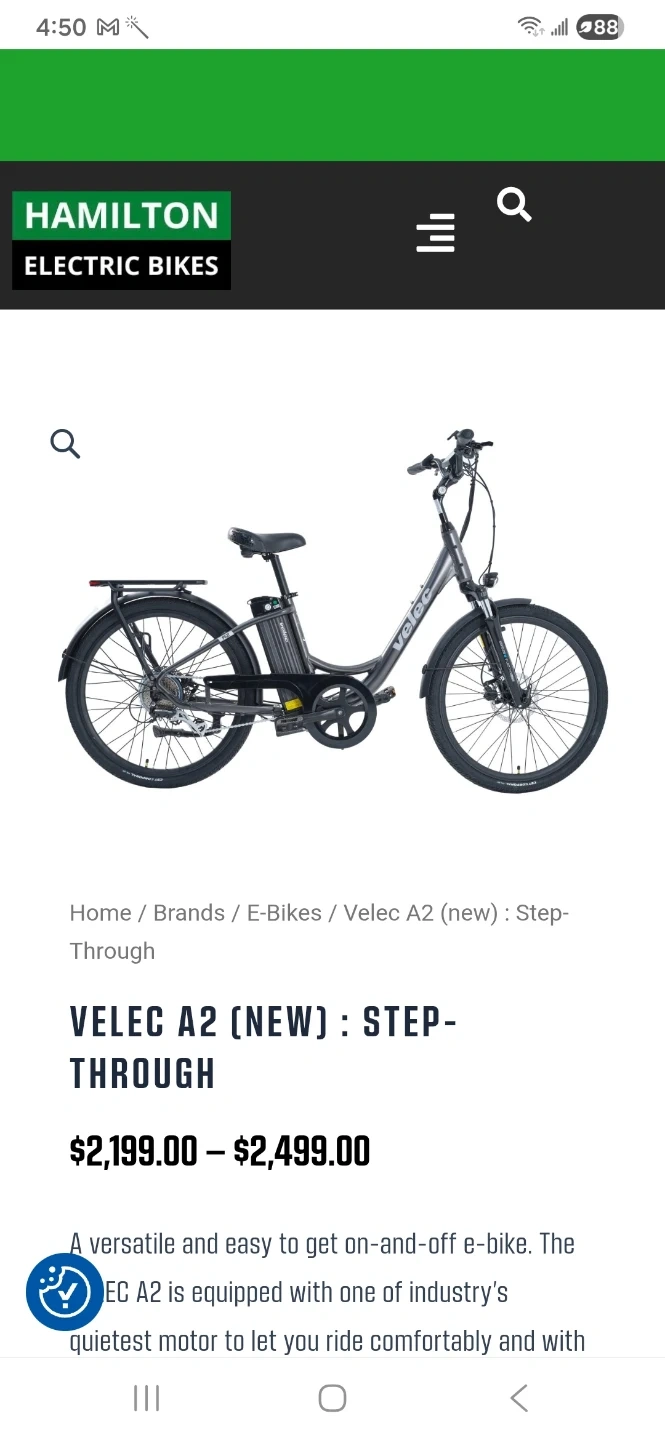 This is a Velec A2 electric bike in red. It's a step-through model with 26-inch wheels. It features hydraulic disc brakes and a Shimano 8-speed derailleur. The bike is designed in Canada.E-Bike, Velec A2 Classic
