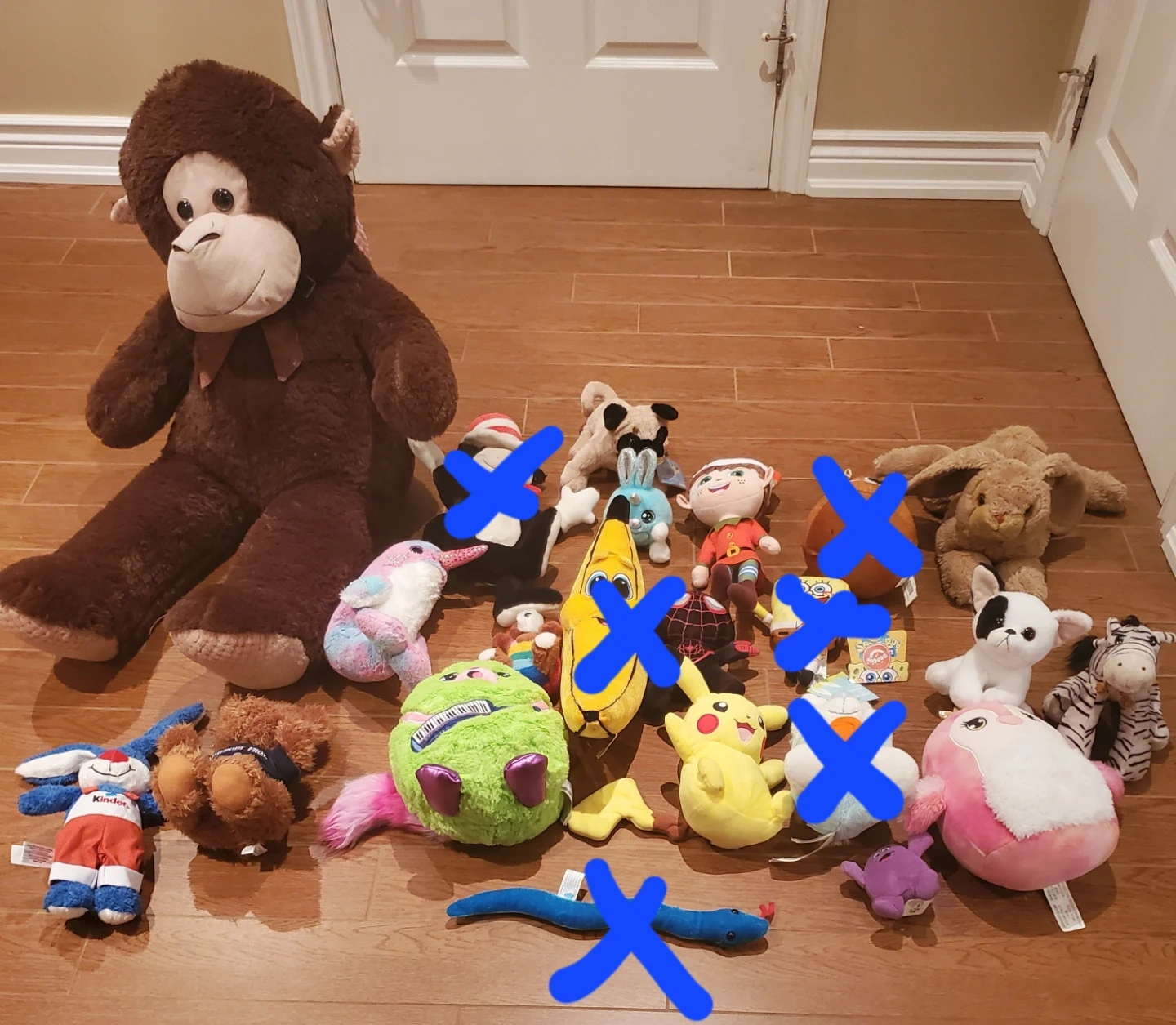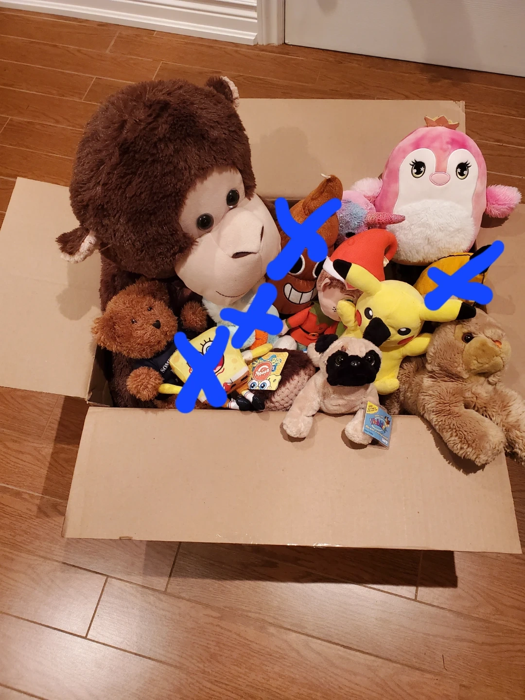 A BIG box of 15 plus pre-loved stuffed animals and plushies. Selling as a lot. Some new with tags. Includes a Squishmallow, a 3ft monkey, and a Webkins pug. Or make an offer on any specific item(s). If it has an X through it, it has been sold.
