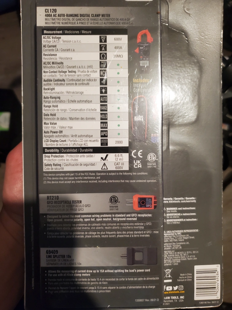 This kit would be great to have around for various electrical project around the house. Includes multiple electrical testing tools. It comes with a clamp meter, GFCI receptacle tester, and a line splitter.