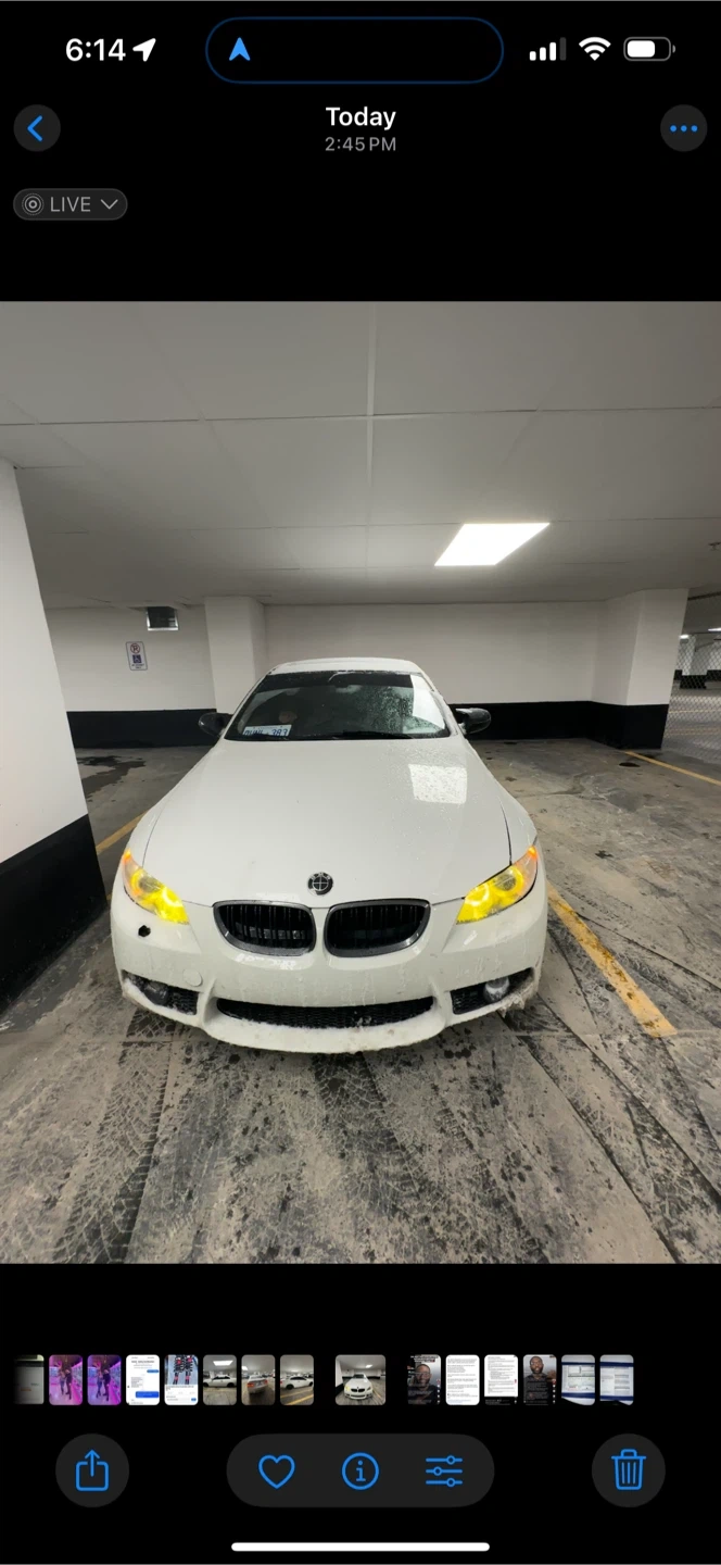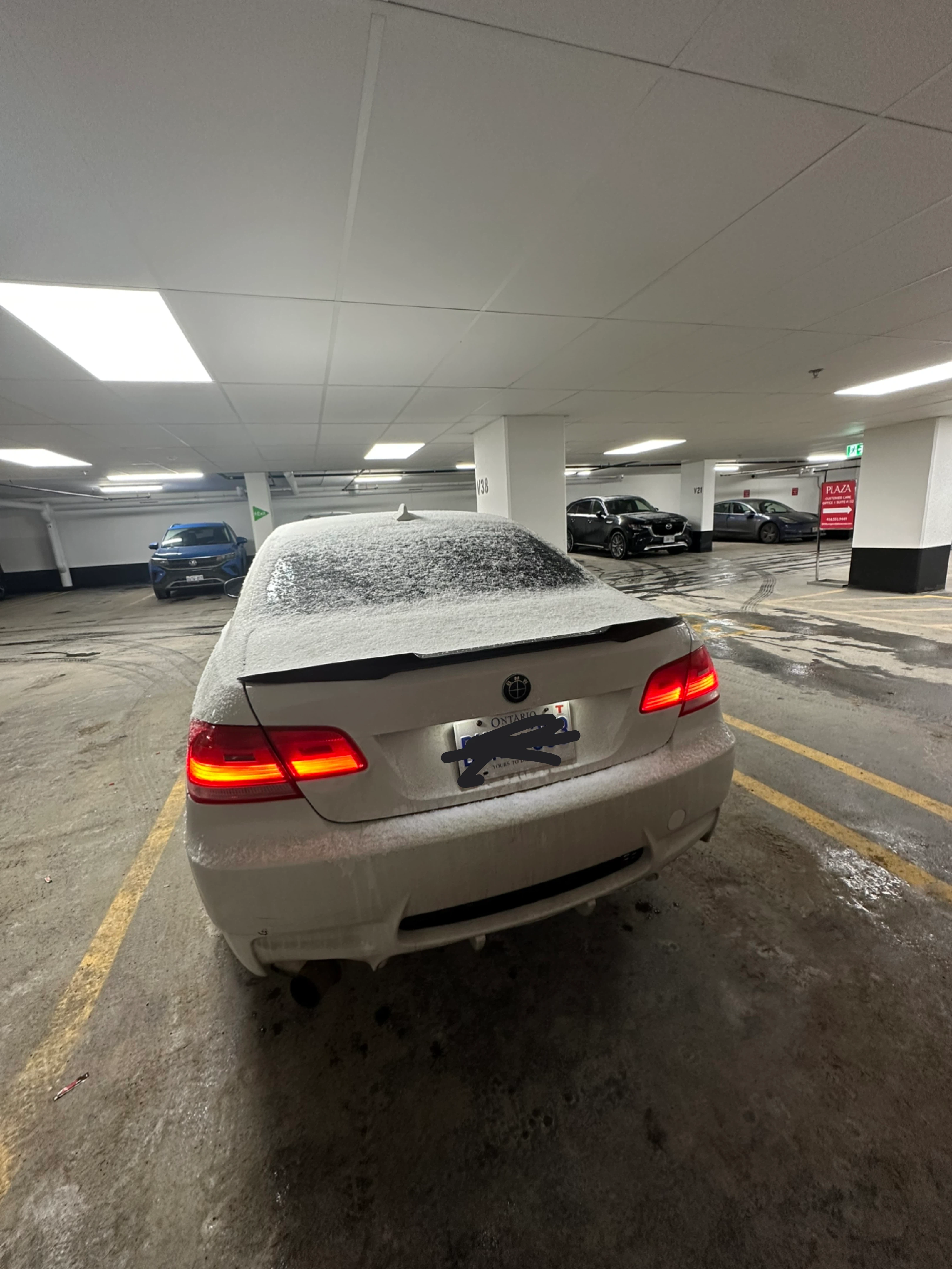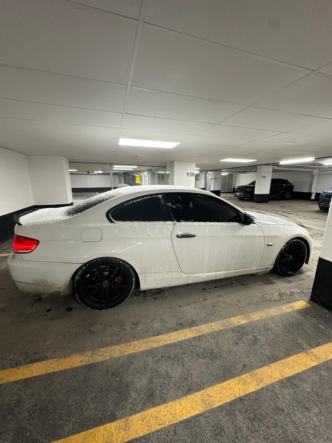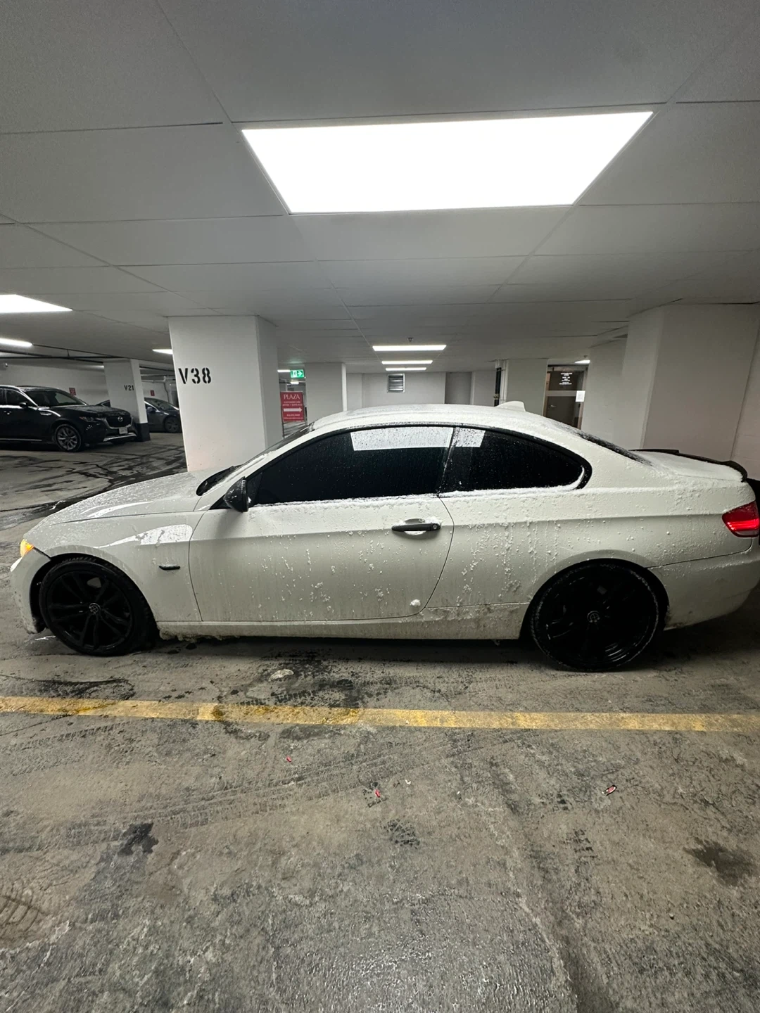 White BMW 3 Series coupe. Black rims and spoiler included. Runs well.