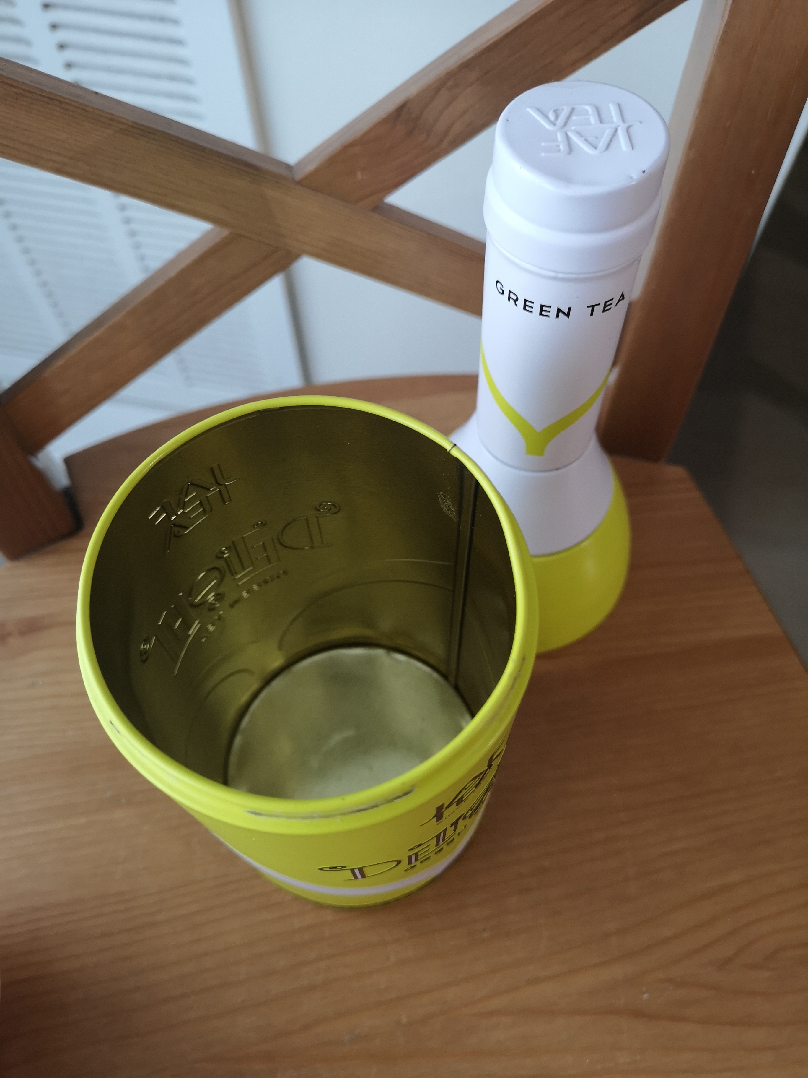 It's a unique and stylish way to store your tea. The container is in good condition and ready for a new home!
