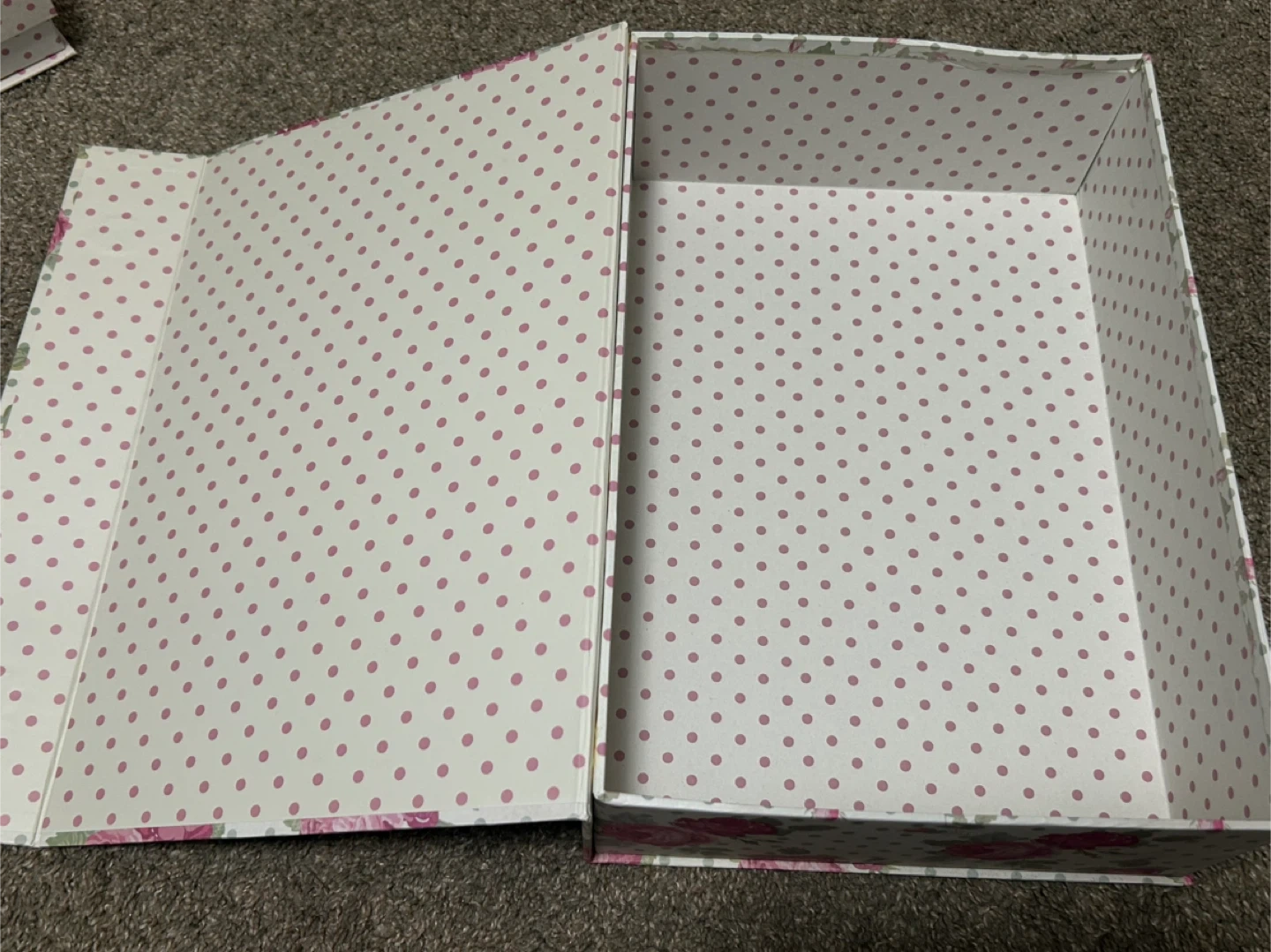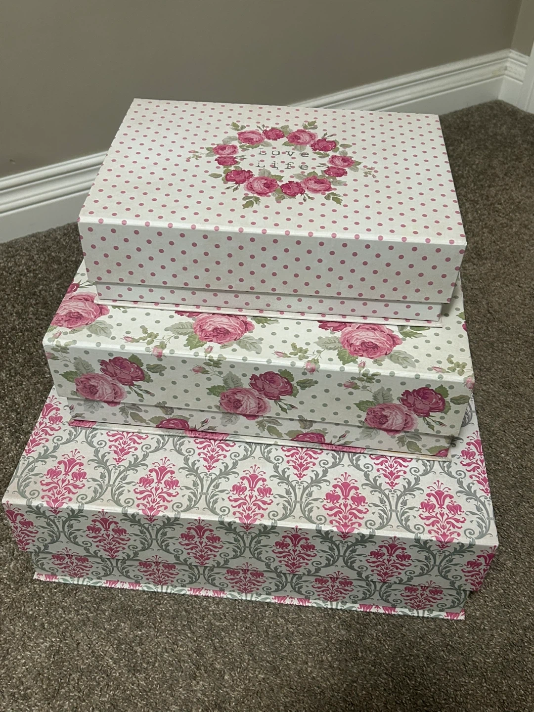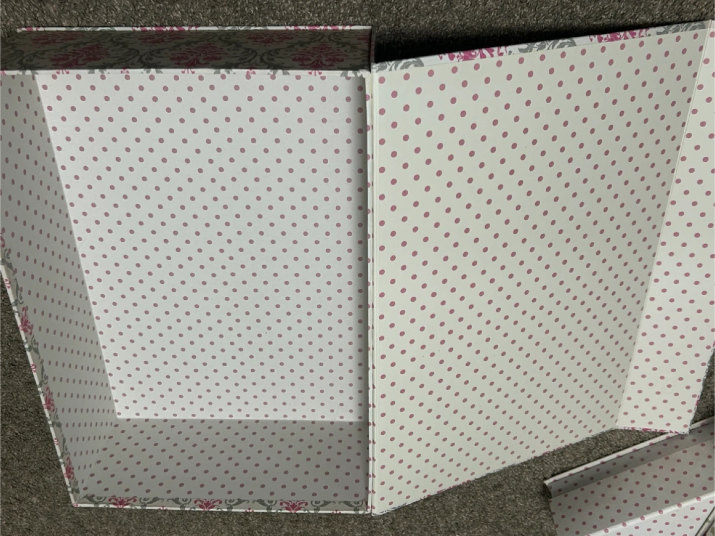 Buy & SellTriple storage box set - pinkTriple storage box set - pink$10A set of three decorative storage boxes. Pink and floral with polka dot insides. New and freshWHERE TO MEETWalmart parking lotView MapSELLEREstNolan Hill211 review0 chats·1 favorites·39 viewsSEND CHAT TO SELLERHi Est! I’m interested in your listing.Hi Est! I’m interested in your listing.Get the Karrot app to chatSign In to chat