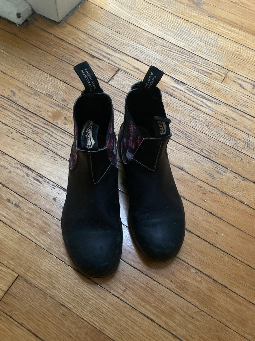 These are Blundstone Chelsea boots in black with a floral lining. They're pull-on style for easy wear. Great for everyday use! Size 4.5 AUS which is 7.5 US. Looking to trade for 4 AUS which is 7 US. Women’s.