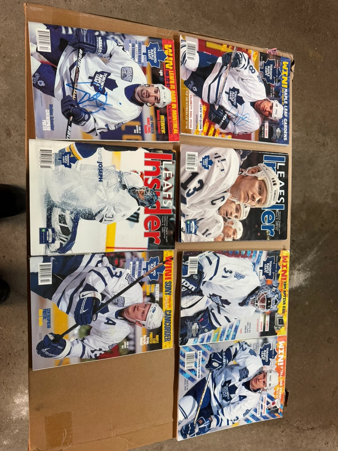 A collection of Toronto Maple Leafs official magazines. Includes issues from October 1998, February 1997, and April 1999. These magazines feature interviews with players like Tie Domi, Mats Sundin, and Curtis Joseph. They also include player profiles and centerfold posters. Perfect for any dedicated Leafs fan!