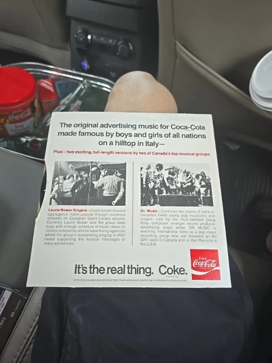 Vintage 7-inch vinyl single featuring "I'd Like To Teach The World To Sing (in perfect harmony)" by Laurie Bower Singers. Includes "Dr. Music" on the B-side. This record was part of the original advertising music for Coca-Cola.