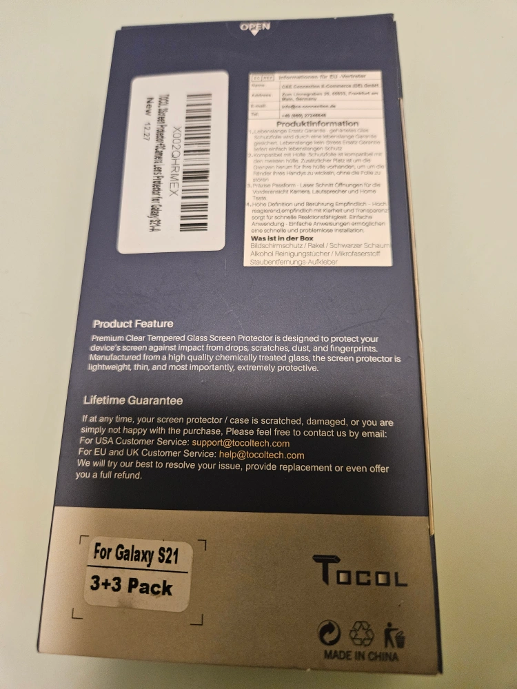 New Tocol glass screen protector. 2 left in the pack. Anti-fingerprint, shatterproof, 9H surface hardness, anti-scratch. Includes installation accessories.