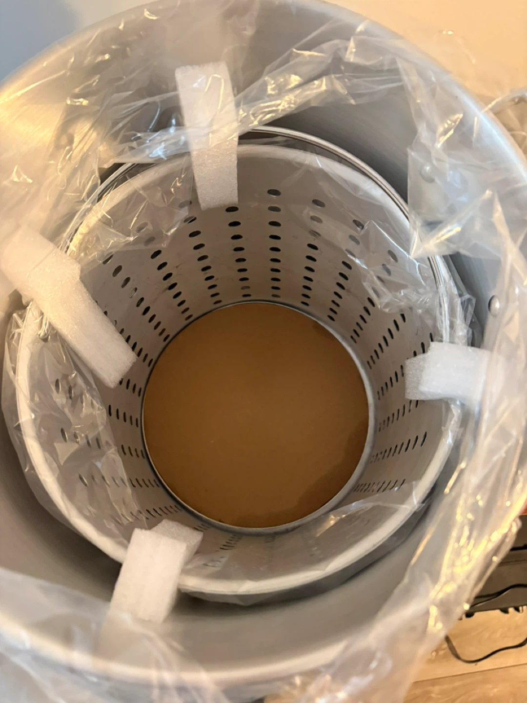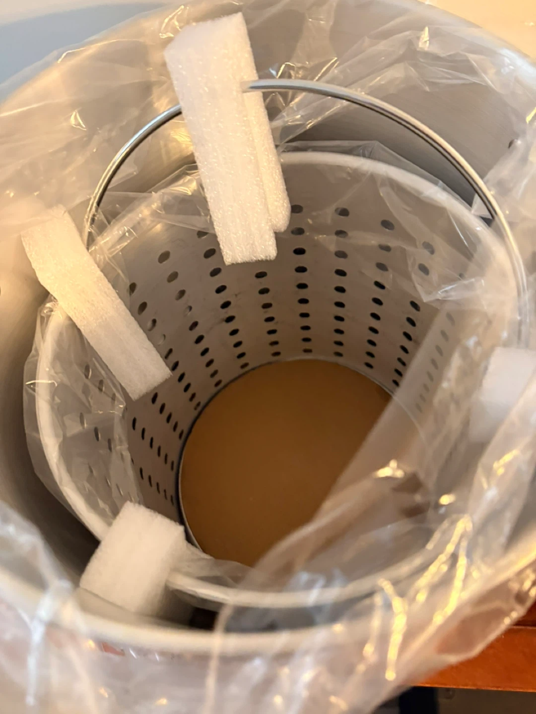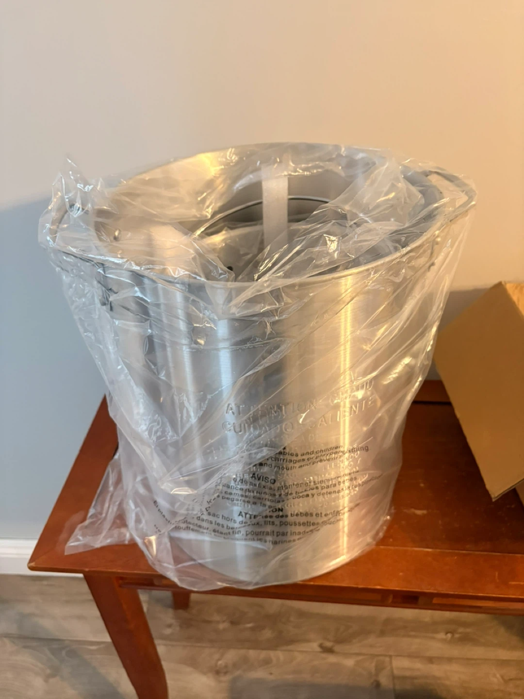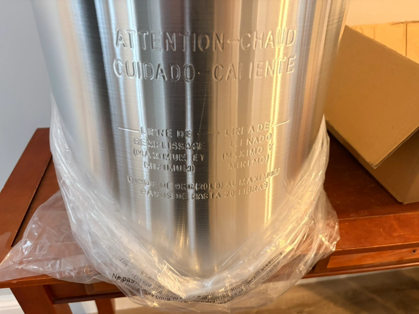 This is a stainless steel stock pot. It's designed for cooking. The pot has markings for maximum and minimum fill levels. Great stock pot with the cage and lid.