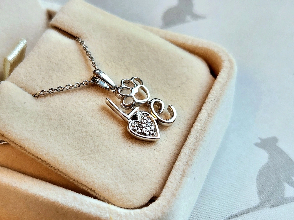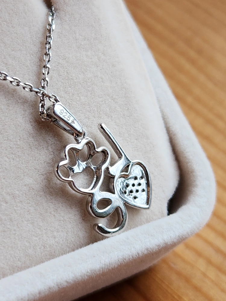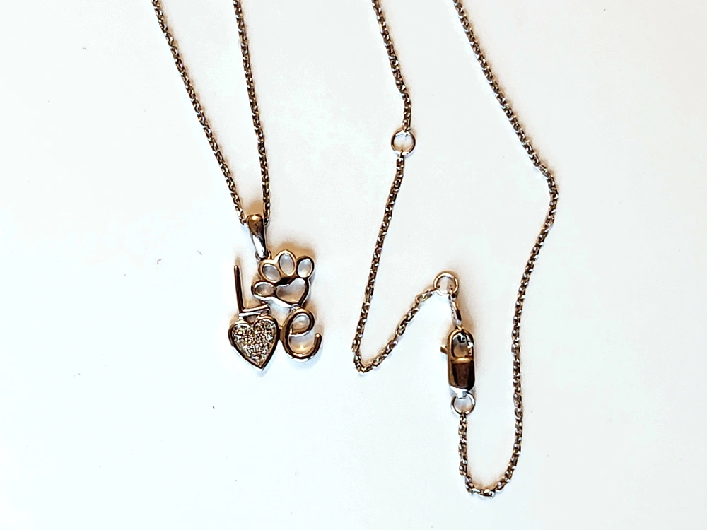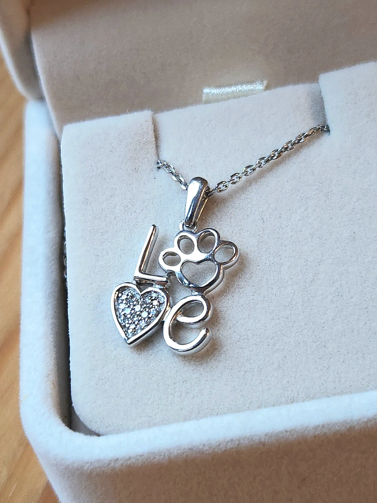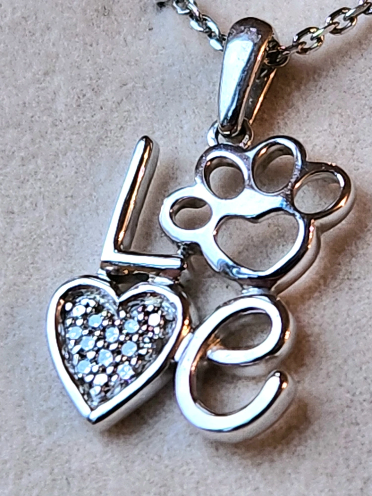 Necklace Sterling Silver LOVE Paw Pendant: Diamond Accented