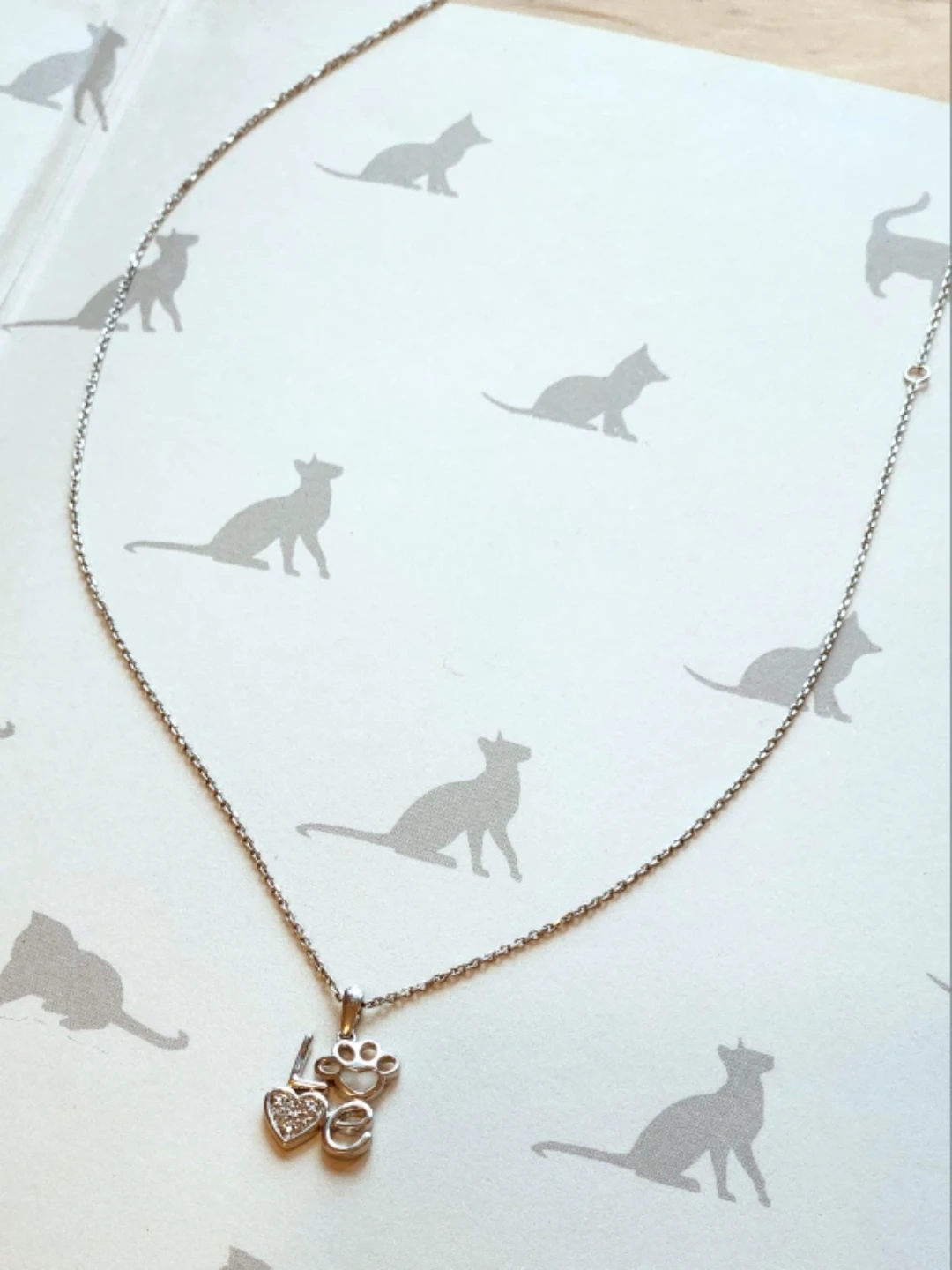 Necklace Sterling Silver LOVE Paw Pendant: Diamond Accented