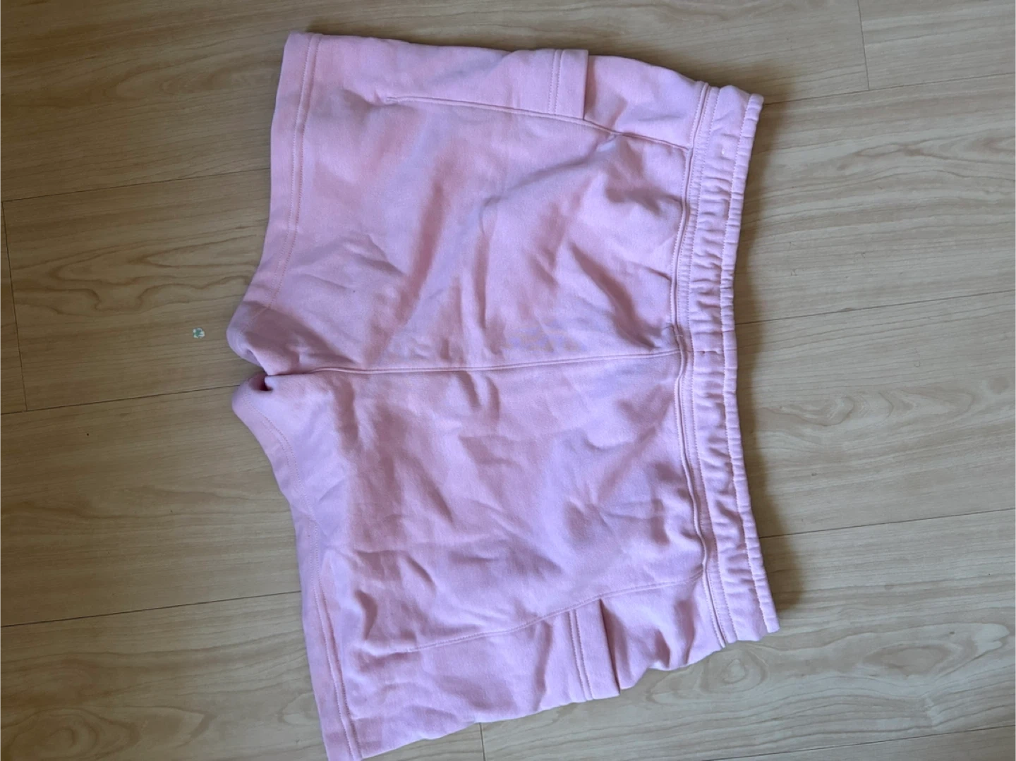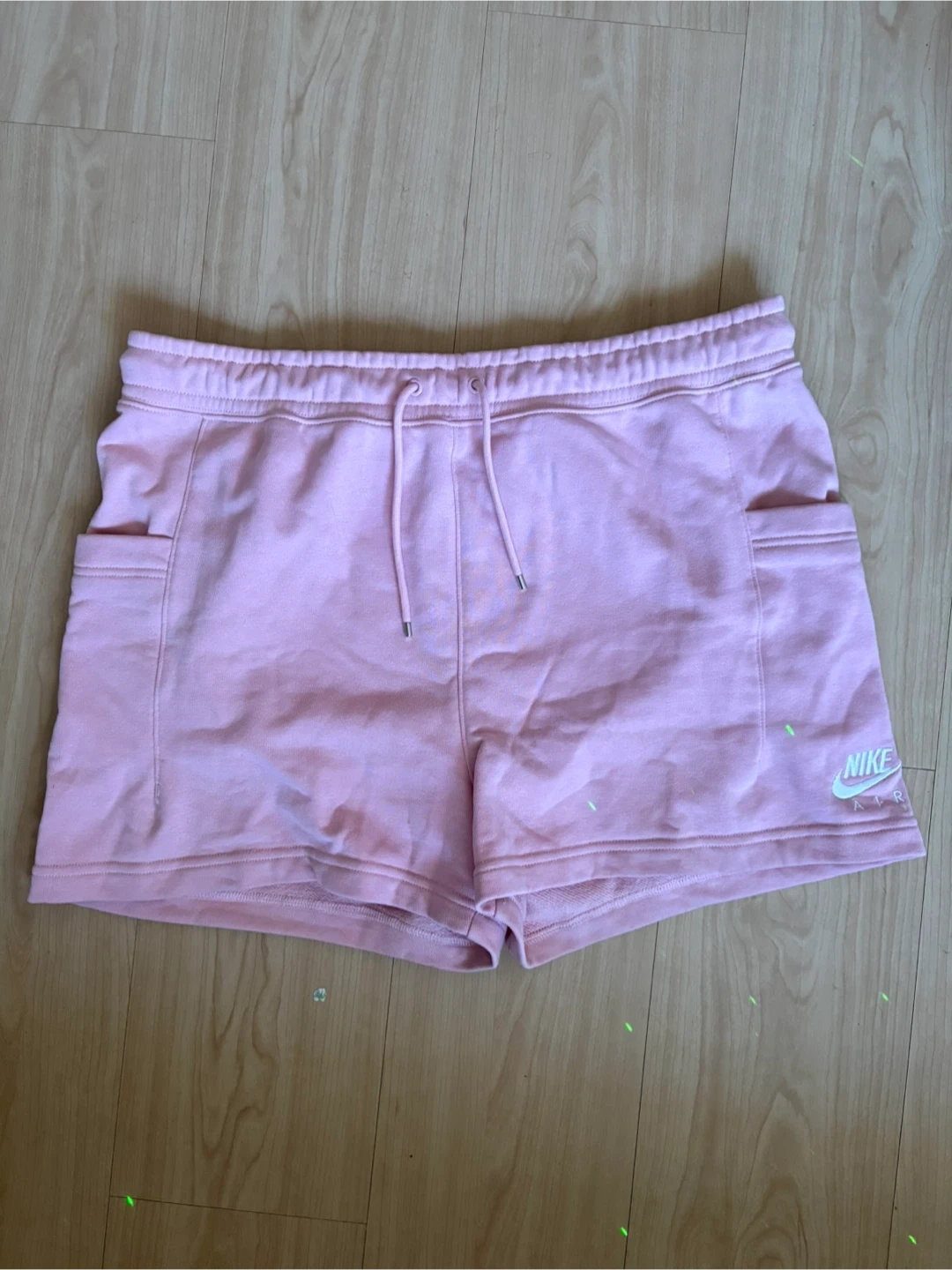 These are comfy pink sweat shorts from Nike. They have a drawstring waist and pockets.