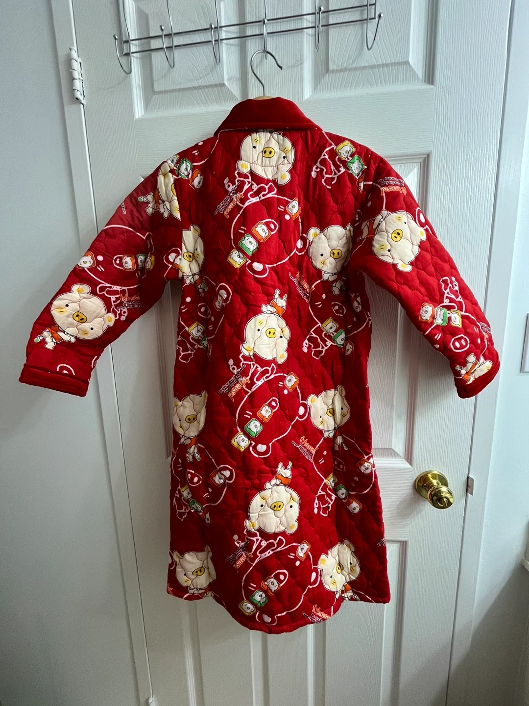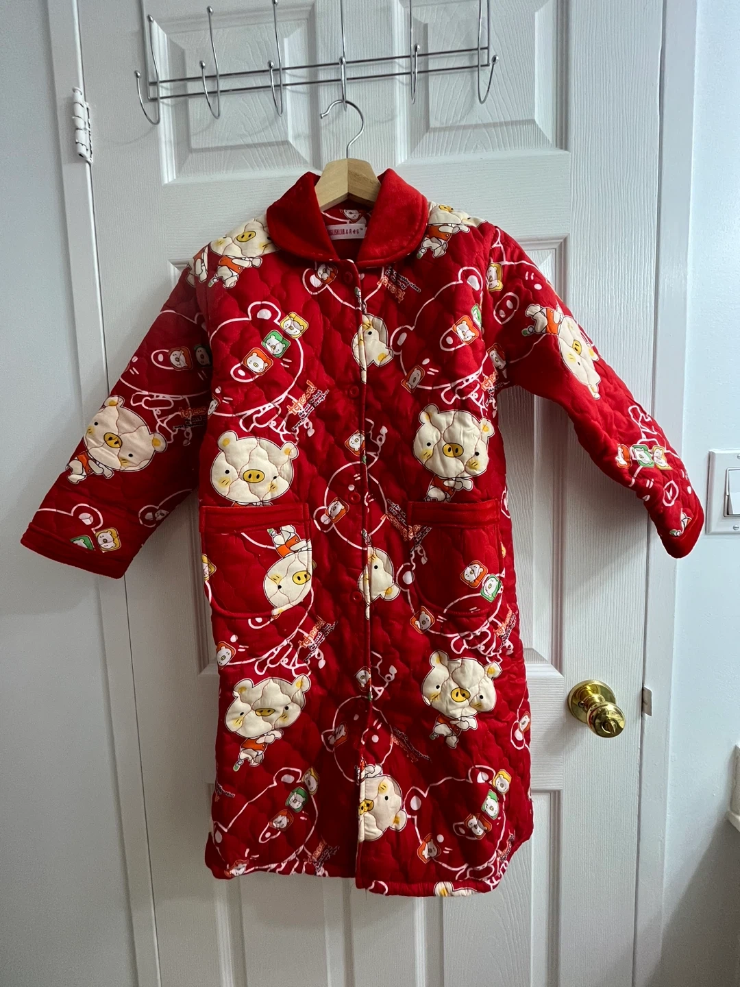 Vibrant red with an adorable piggy print, this padded, thickened set is so warm and snuggly~