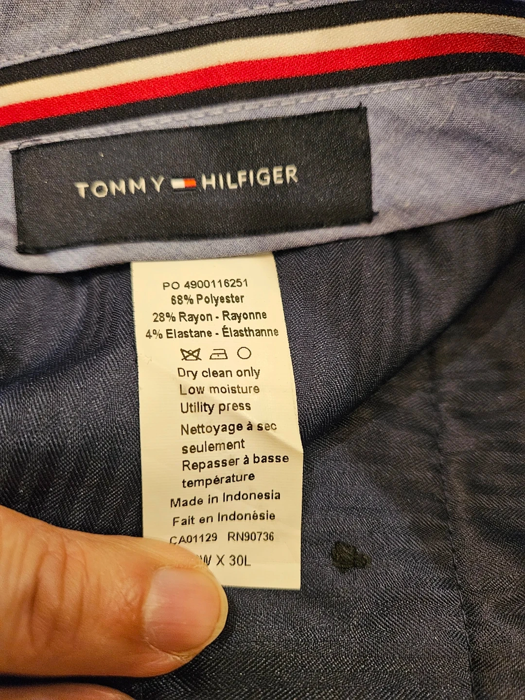 Tommy Hilfiger black dress pants in great condition! The size is 34W/ X 30L and they are made of 68% Polyester, 28% Rayon, and 4% Elastane