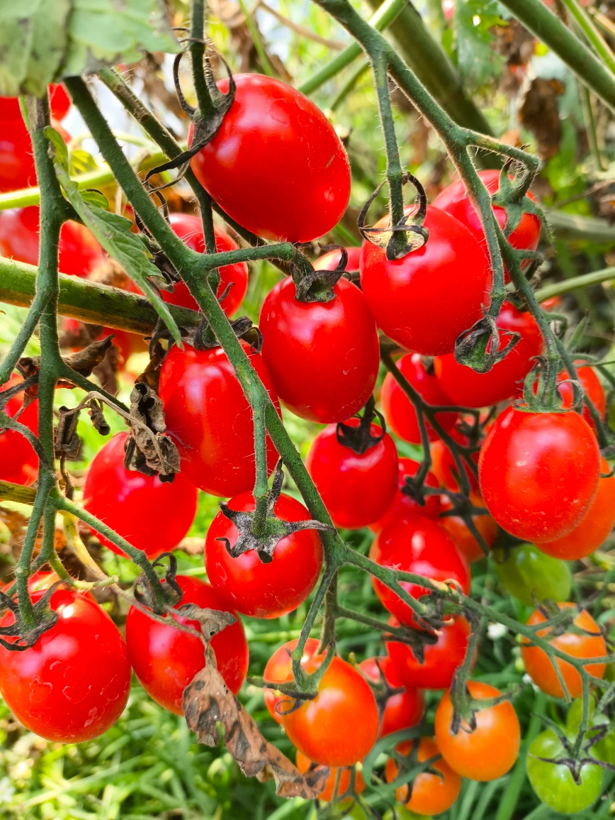 Tasty Organic Cherry tomatoes from my mom's organic garden. Ripe naturally on the vine. NO SPRAY.They are MUCH MORE DELICIOUS than the Cherry tomatoes from supermarket. Try them, you will love them FOREVER .