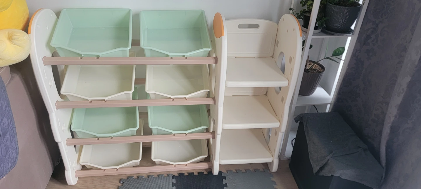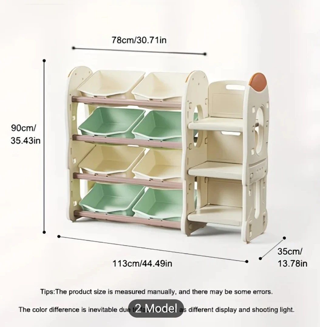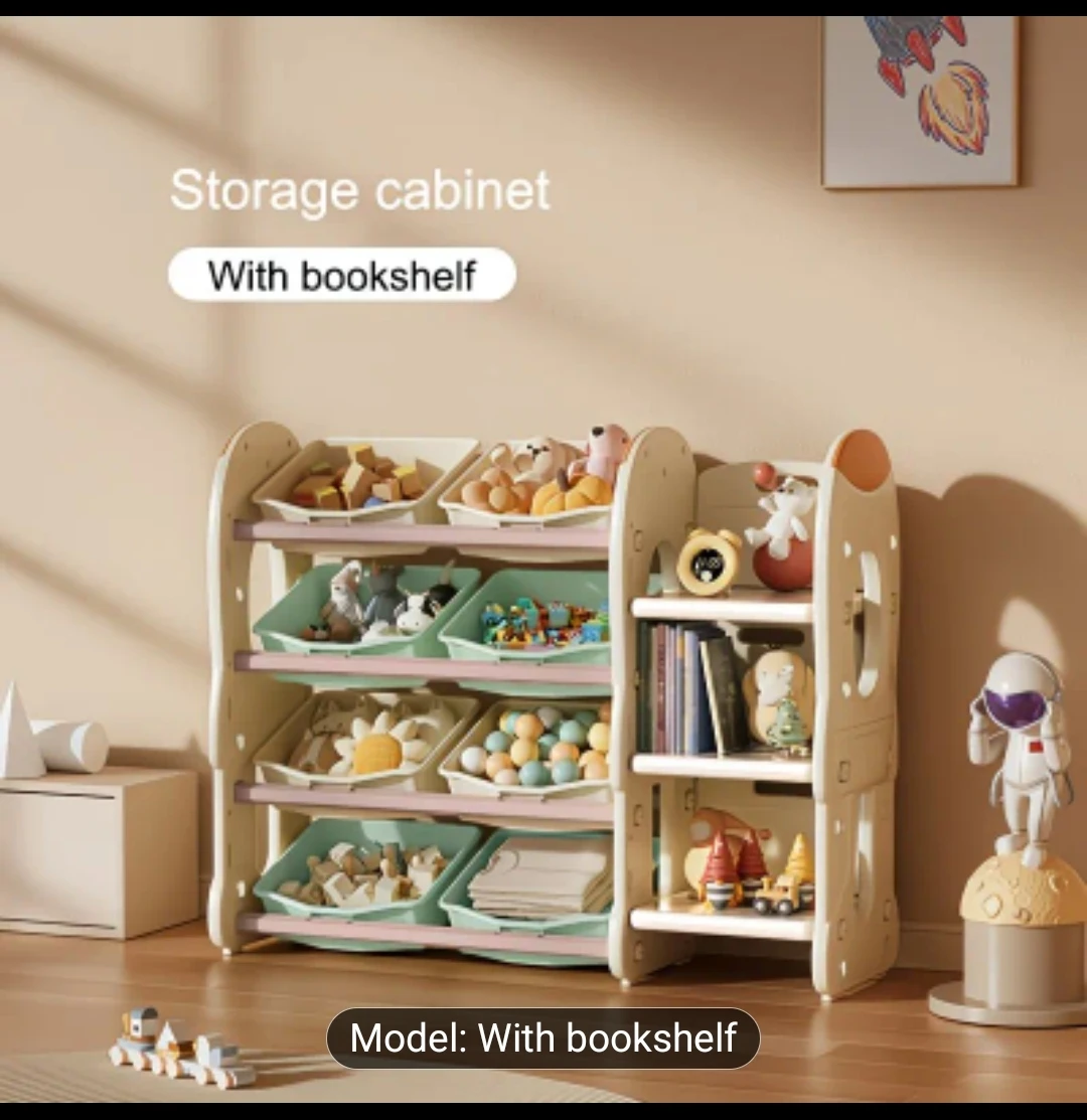 A Large Capacity Storage Cabinet with 8 Storage Boxes, Suitable for Organizing Miscellaneous Items, Toys, Books, And Clothes. It Includes a Bookshelf And Is Easy to Assemble. Bookshelf can be placed on the right or left side.