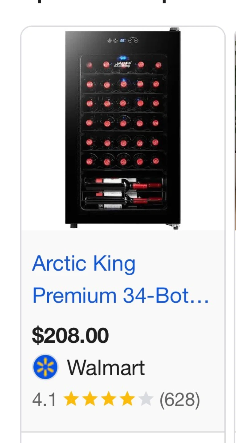This is an Arctic King wine cooler refrigerator. It's black with a glass door. It has multiple shelves for wine bottles. This would be useful for someone looking to store and chill their wine collection. Can hold over 30 bottles