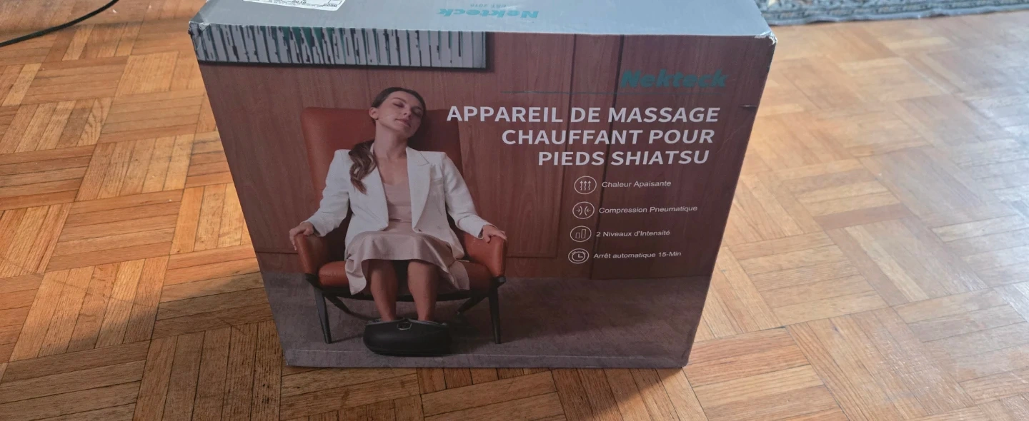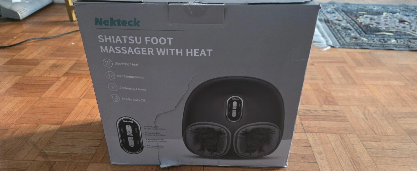 Relax your feet with this Nekteck Shiatsu foot massager. It includes soothing heat and air compression. This unit has 2 intensity levels and an automatic 15-minute shut-off. Great for unwinding after a long day!