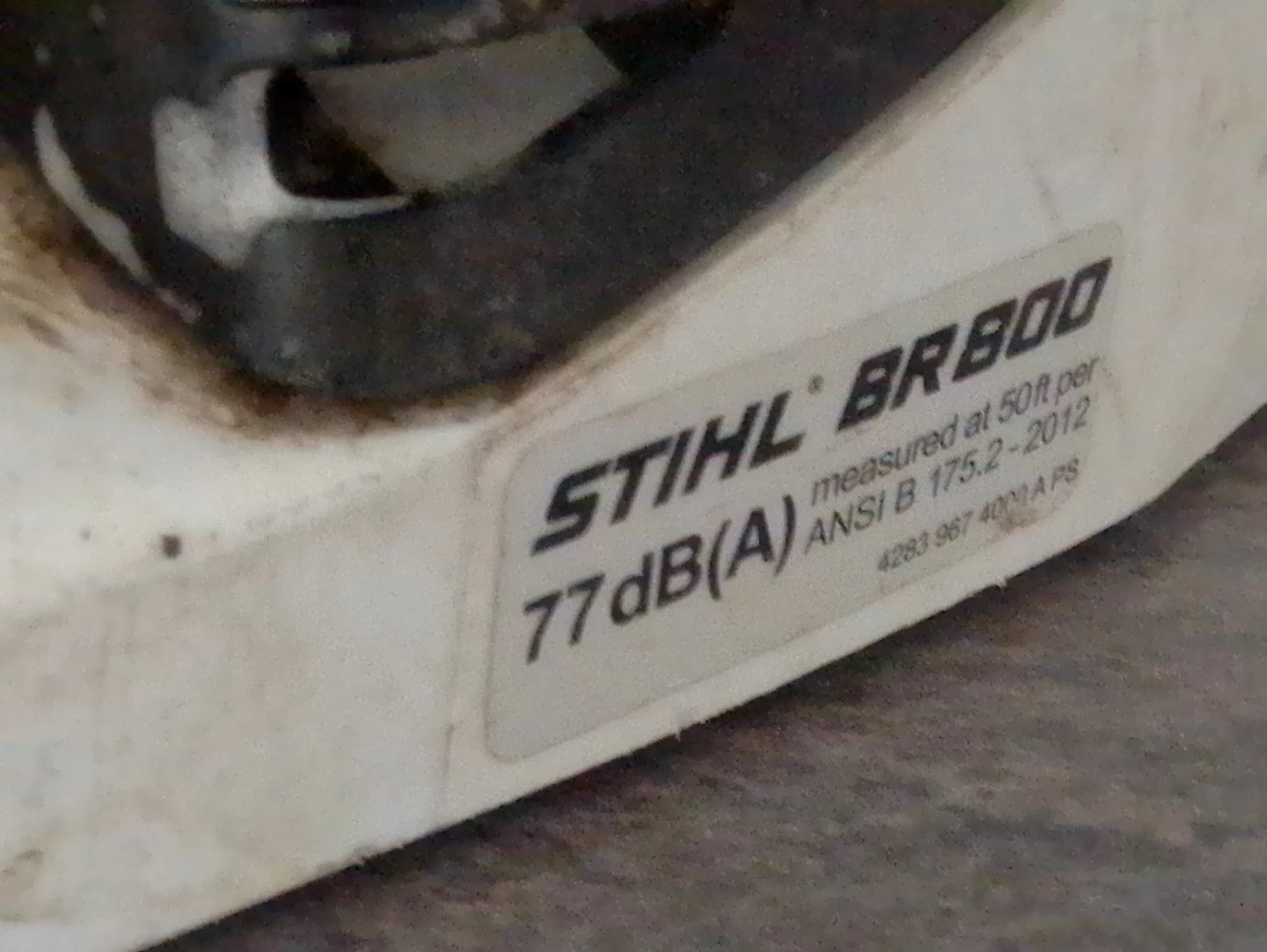 Powerful STIHL BR800 MAGNUM leaf blower for tackling large areas. Features a 77 dB(A) sound level measured at 50ft per ANSI B 175.2-2012. This machine is built for performance in demanding conditions.