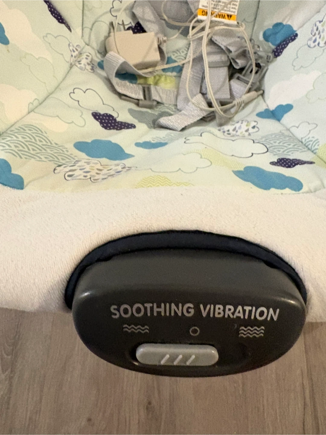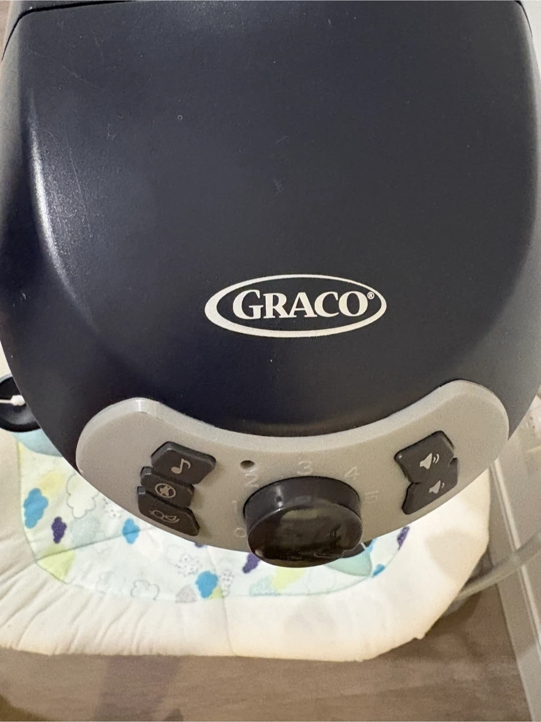This Graco baby swing provides a safe and soothing space for your little one. It features multiple speed settings and a gentle vibrating function to help calm your baby. The cute cloud and blue pattern on the seat is lovely. It's perfect for keeping your baby content and relaxed!