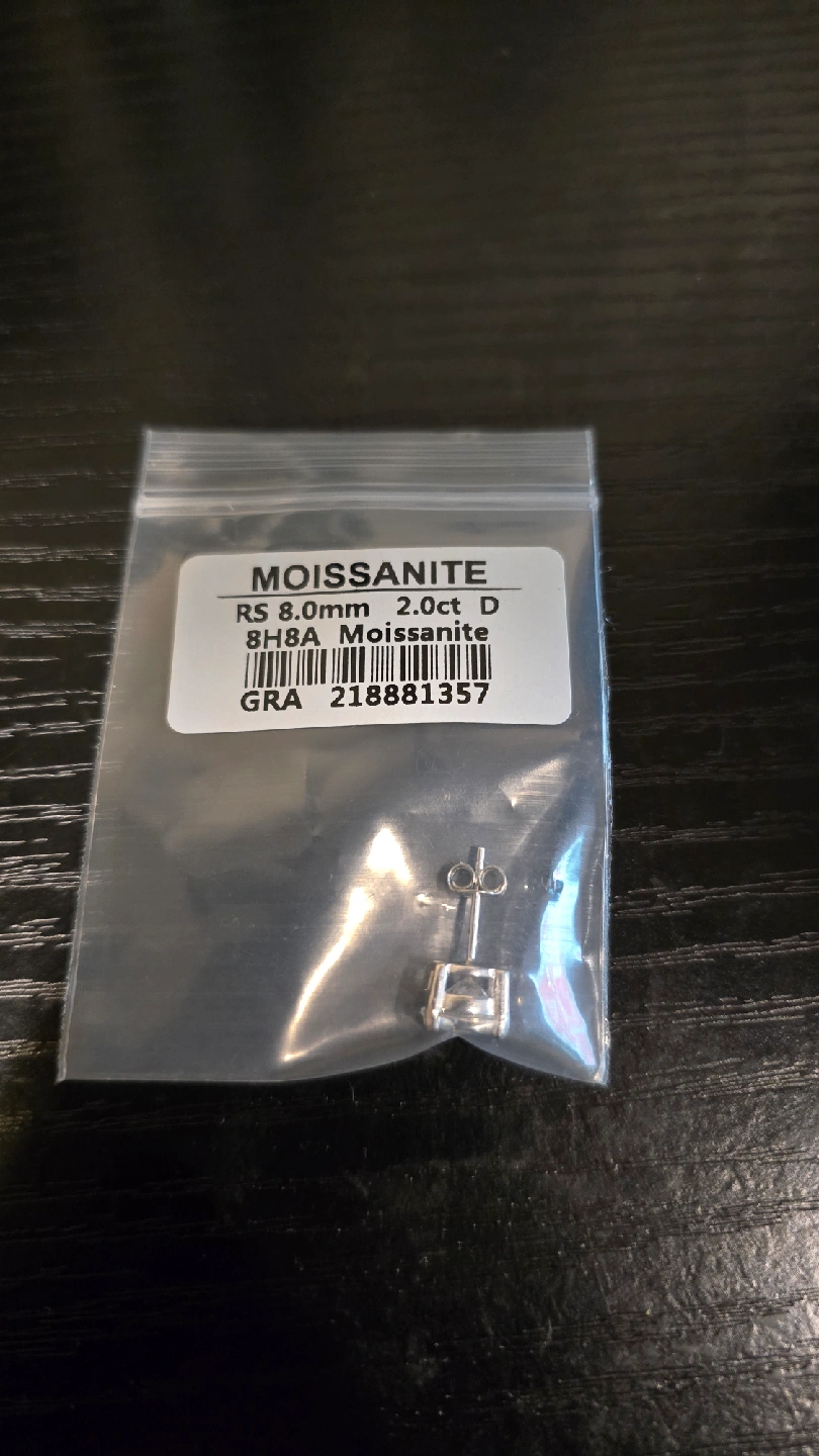 These are GRA moissanite stud earrings, brand new in packaging! They are 8.0mm in size and 2.0ct with a D colour grade. Comes with a GRA certificate.