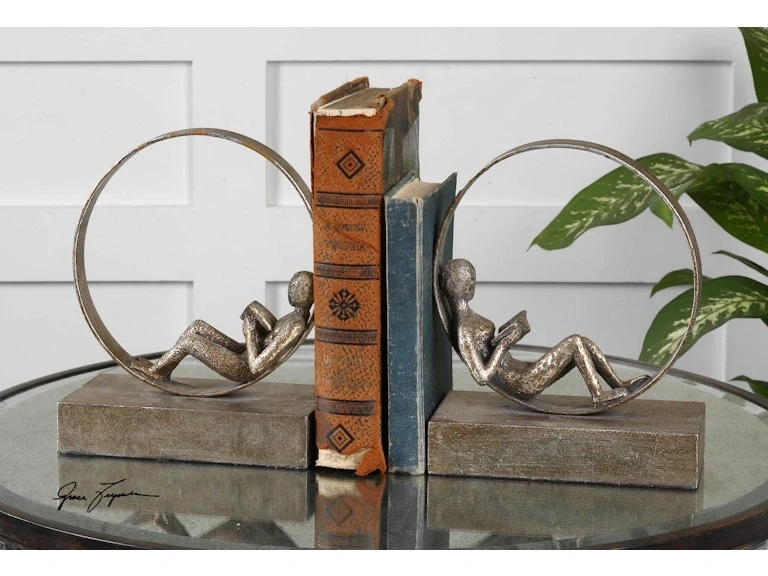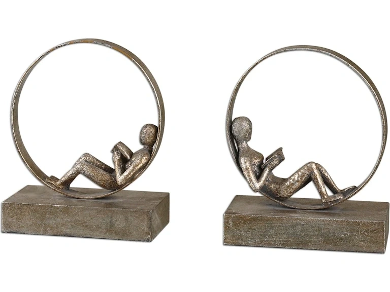 45These bookends feature a unique design of figures reading within a circular frame, mounted on a rectangular base. They're perfect for adding a touch of sophistication to your bookshelf or desk!