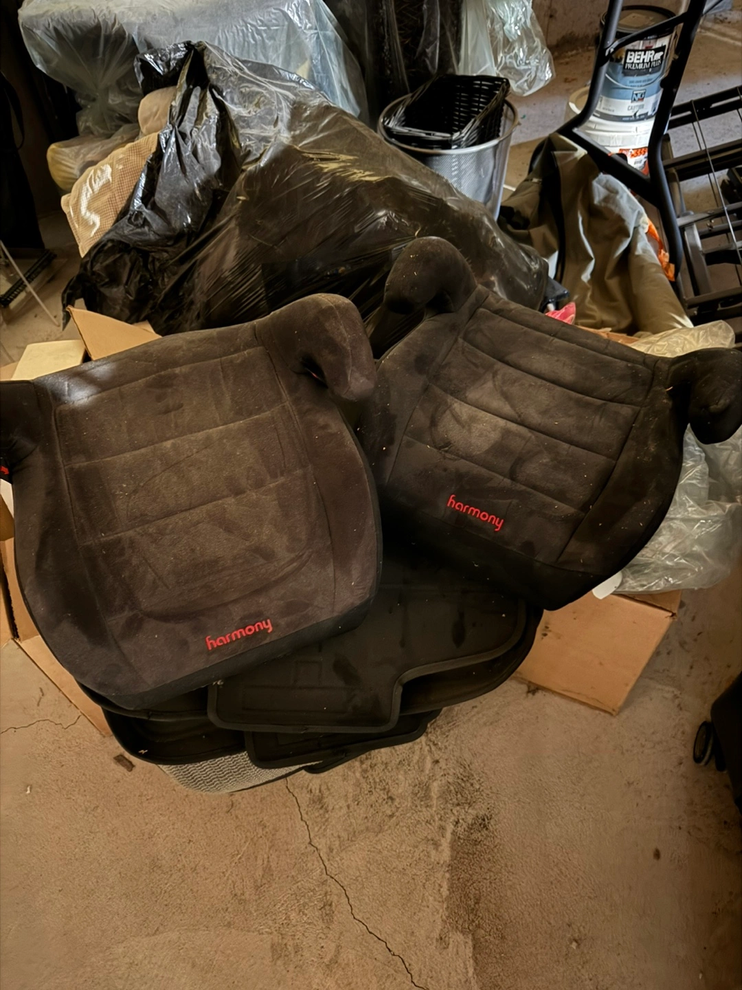 Four booster car seats. One Graco, one Harmony. Both used, just needs to be cleaned.