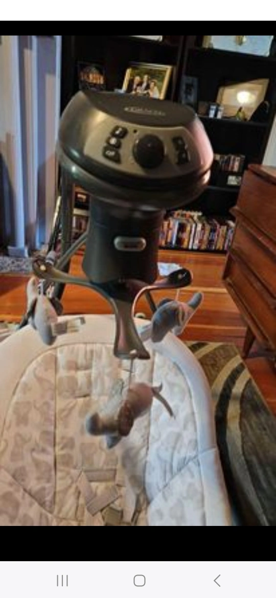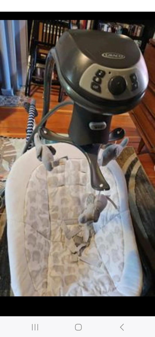 10Graco baby swing with music, vibration with different levels, and the option for nature sounds. It also has adjustable speeds and volume. Works excellent! My baby just is into a different swing more, so I'm selling it.