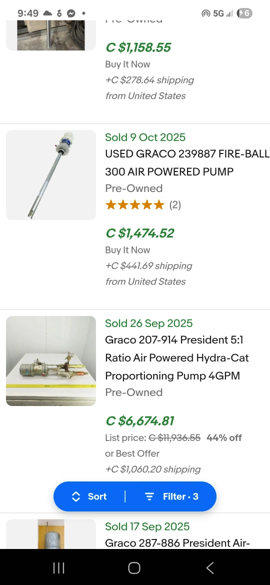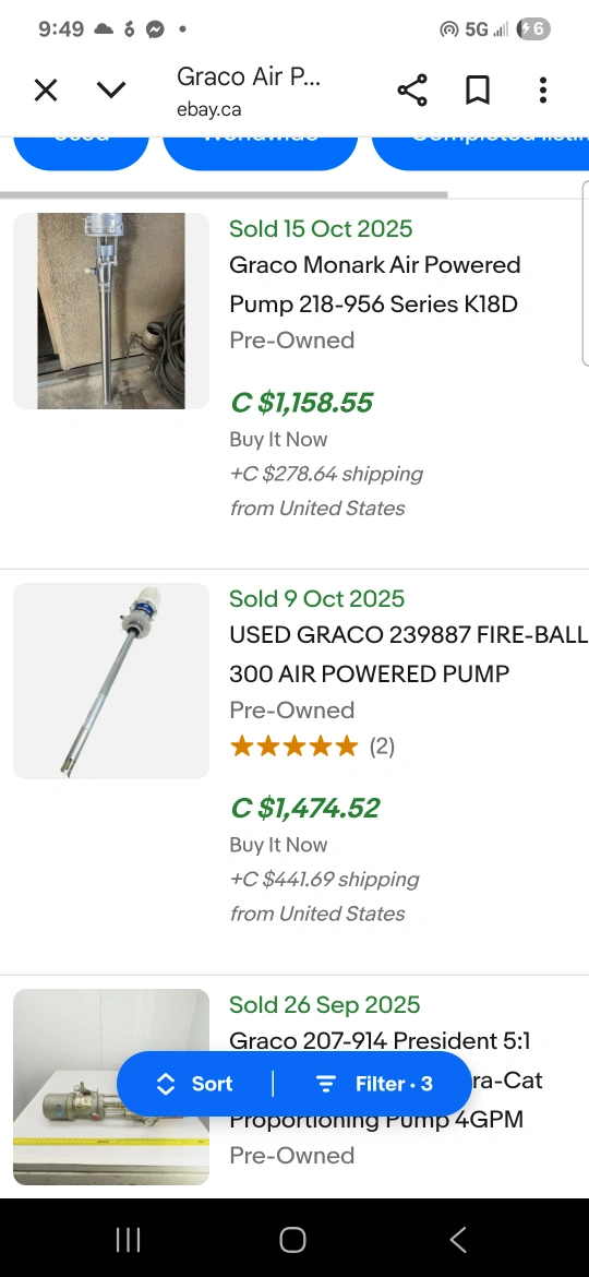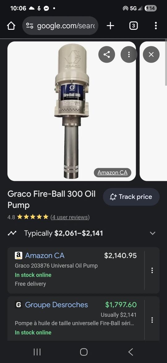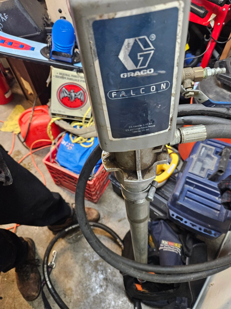 Selling a used Graco Falcon air powered oil/greese barrel transfer pump It's in good working condition 10-1 ratio Max flow rate 14.2 g.m.p. retails for over two grand I also have 2 Graco Fast-Flo pneumatic barrel oil/greese transfer pumps 1-1 ratio in perfect working condition retail price is 1500.00 selling used on ebay for $500.00 -$900.00 each