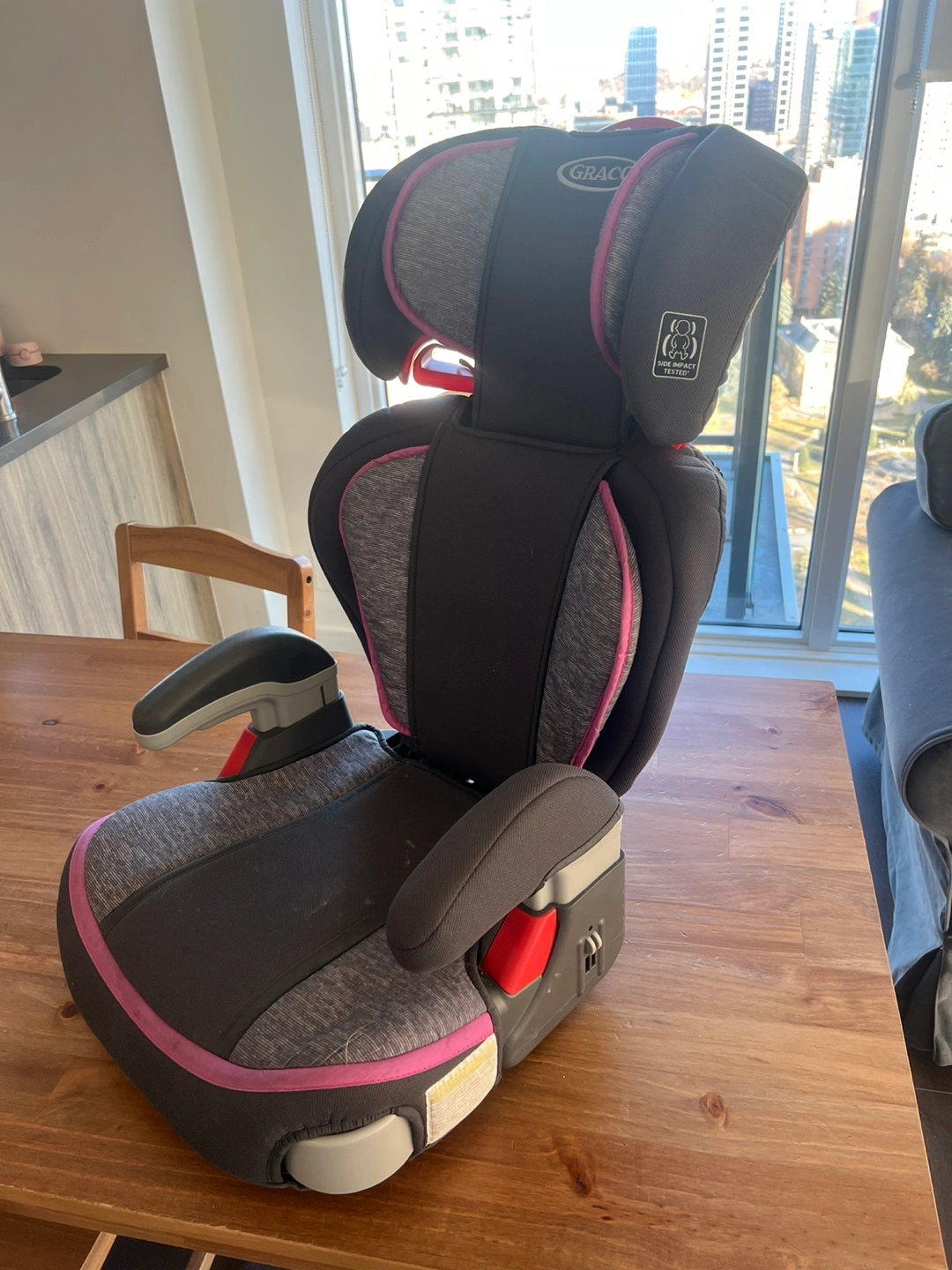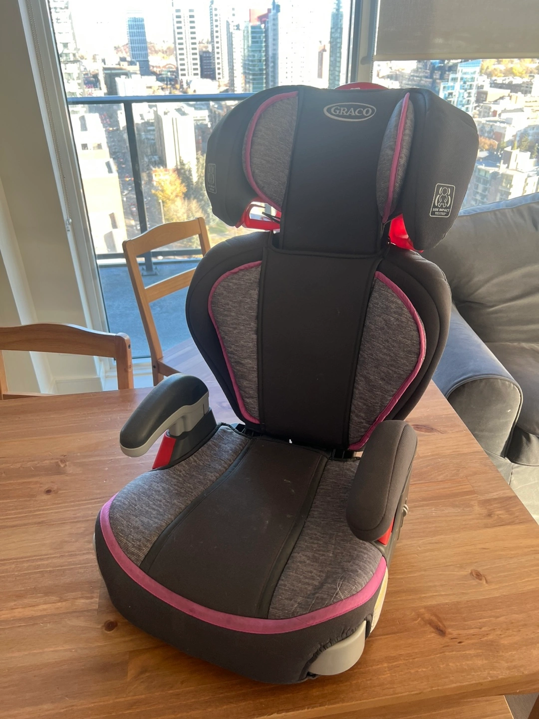 Selling a Graco highback booster car seat! It's in great condition and ready for a new home. This seat is designed to keep your child safe and comfortable as they transition from a harnessed car seat to a seat belt. Perfect for growing kids!