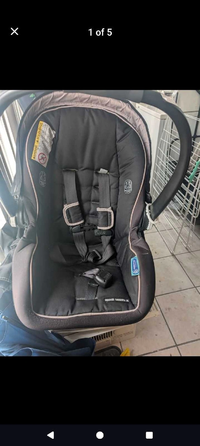 This is a gently used Graco click connect, ready for a new little passenger! It's in good condition and comes with the base, making it easy to transfer from car to stroller. Manufactured in 2022. Key features include: * Infant Car Seat * Includes Base * Model SR35 LT LX * Manufactured in 2022