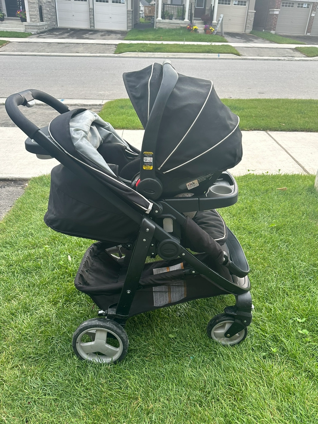 Graco click and connect stroller. Photos included are showing different ways to use the stroller with a graco car seat.