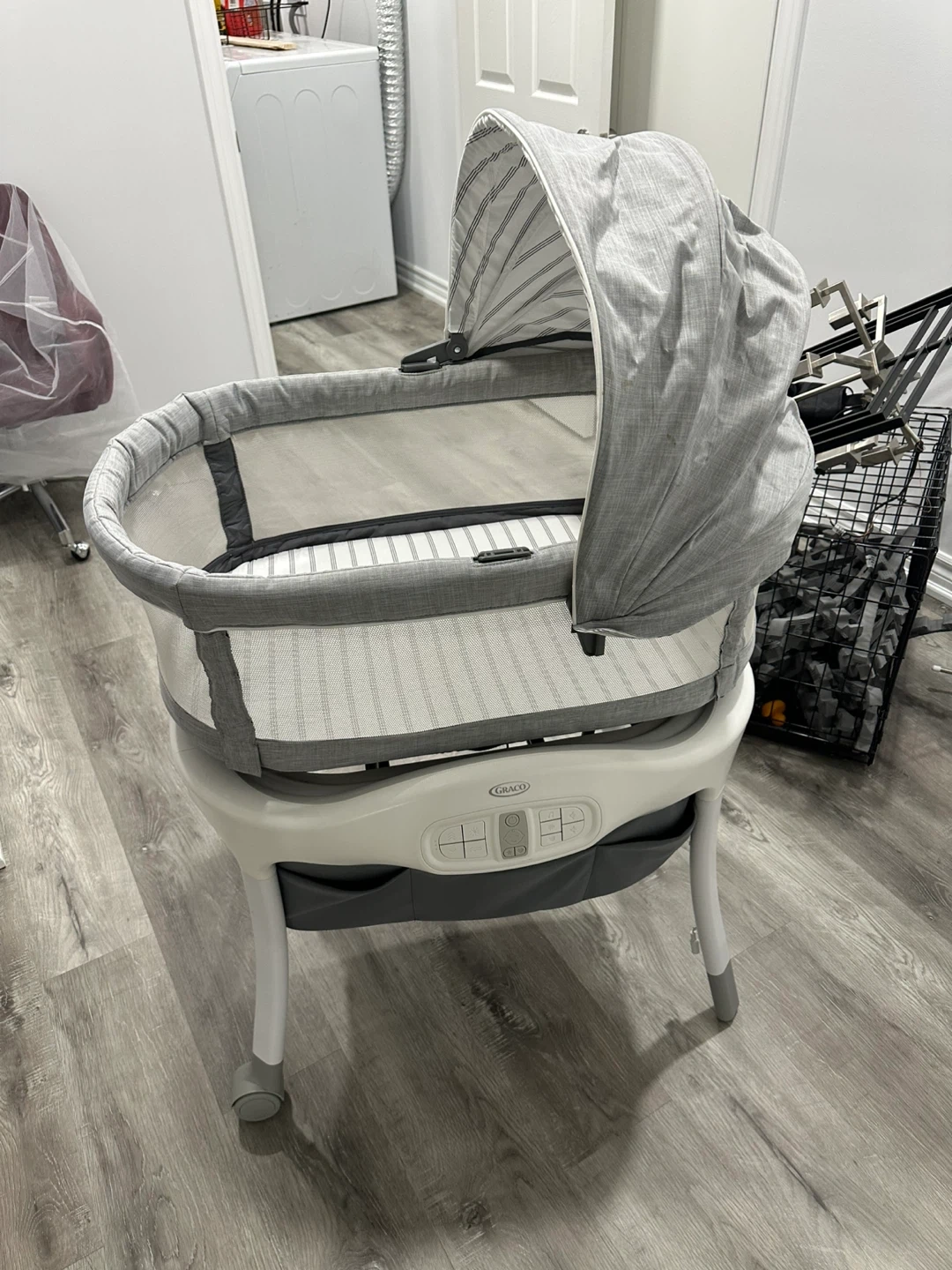 15Selling a Graco Sense2Snooze Bassinet with cry detection technology! This bassinet is designed to soothe your baby back to sleep. Originally bought for $490, it's in great condition and ready for a new home. Perfect for newborns and infants!