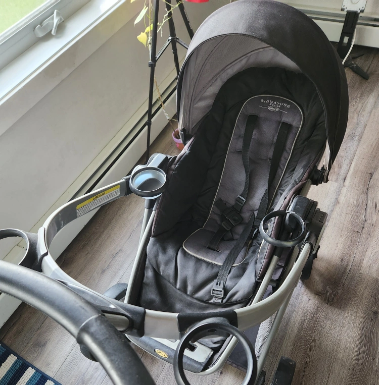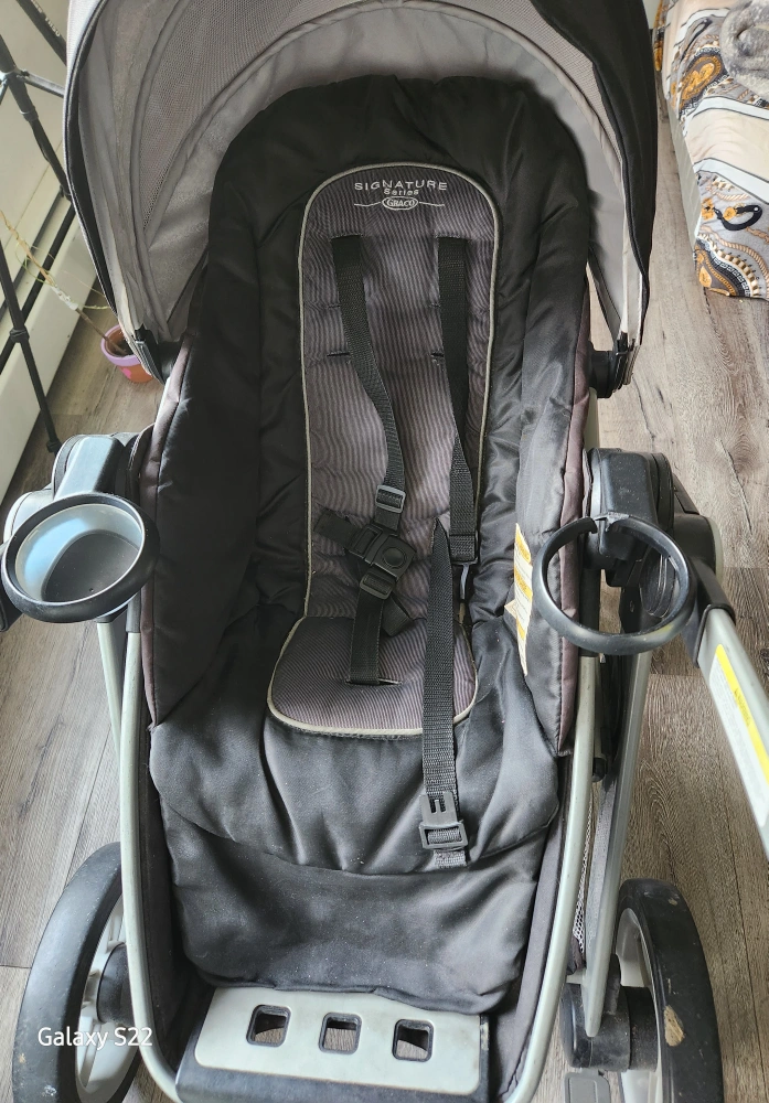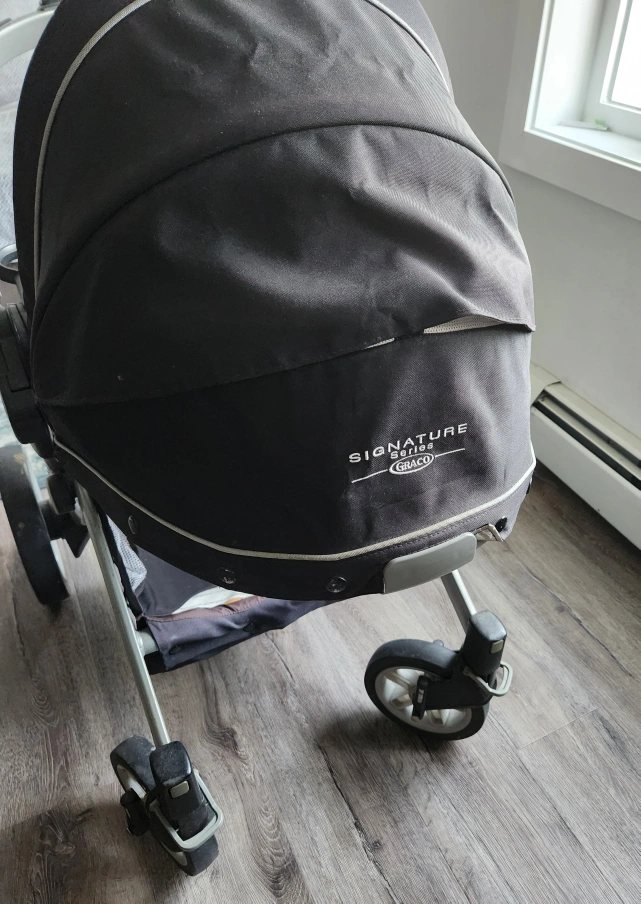 Selling a Graco Signature Series Lite DLX stroller. It's in good used condition and ready for a new family! It features a spacious storage basket underneath and cup holders for both parent and child. Perfect for walks around the neighbourhood or trips to the park