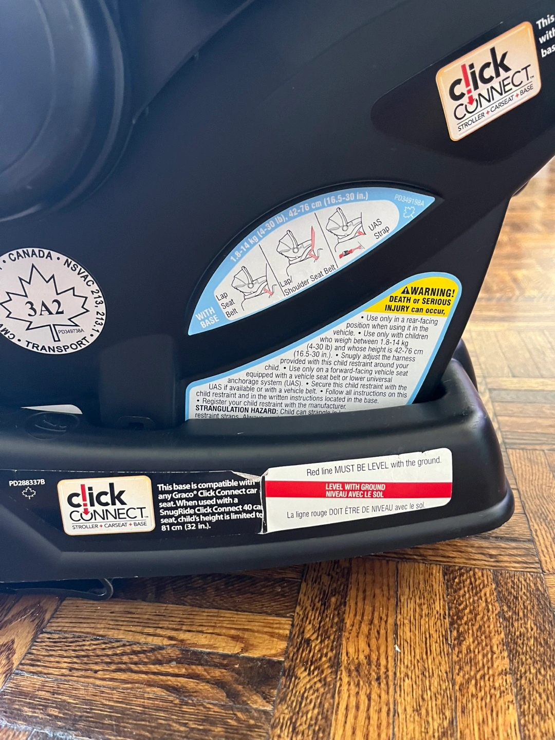 Selling a Graco SnugRide infant car seat. It's in great condition and ready for a new little one! This car seat is designed for infants and provides a secure and comfortable ride. It's compatible with Graco's Click Connect system, making it easy to transfer between the car and stroller. Machine washable cover Pet free smoke free home & car Cash only Price Great condition