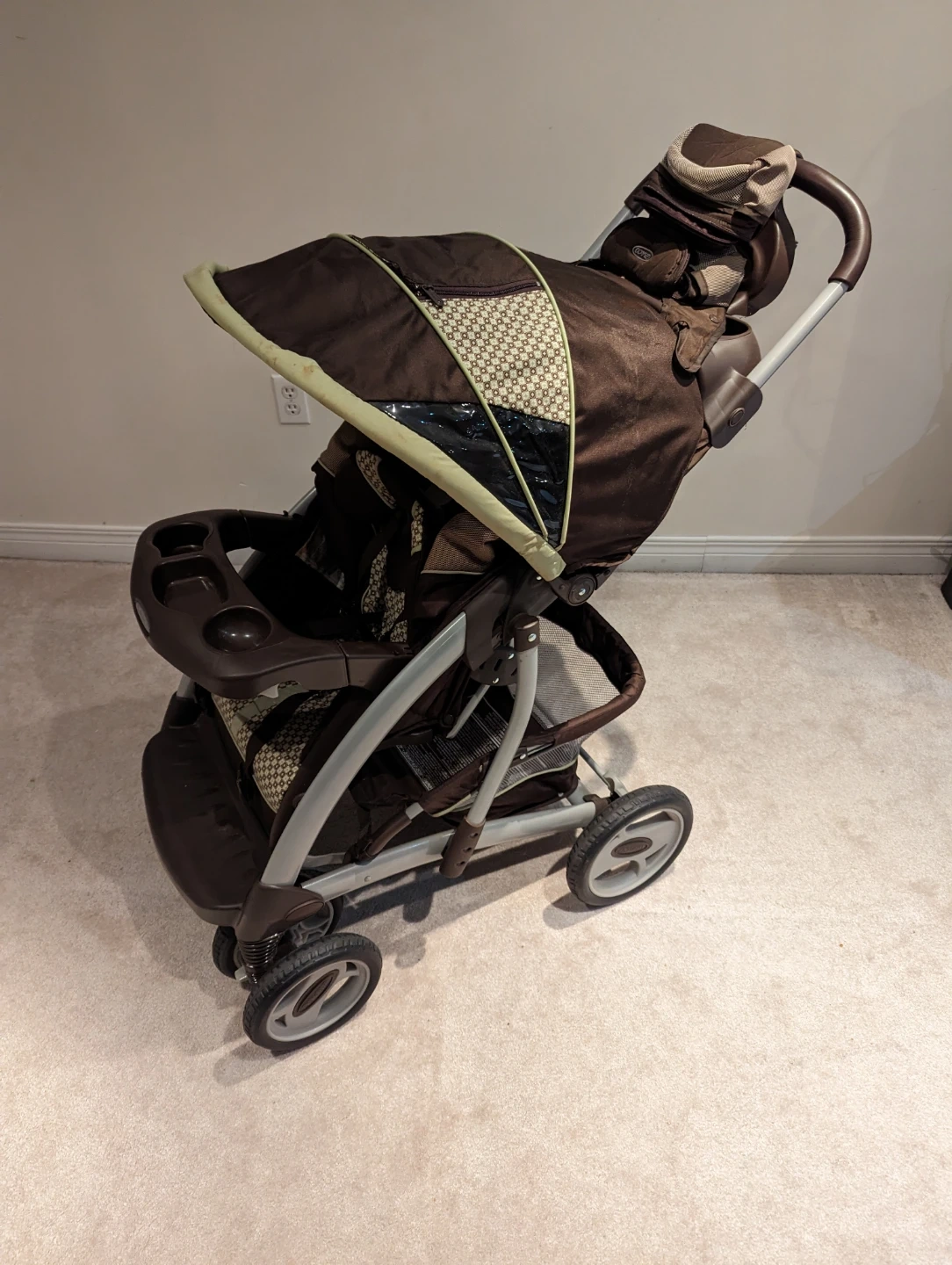 67Selling a Graco stroller in brown and green. It's in great condition and lightly used a handful of times