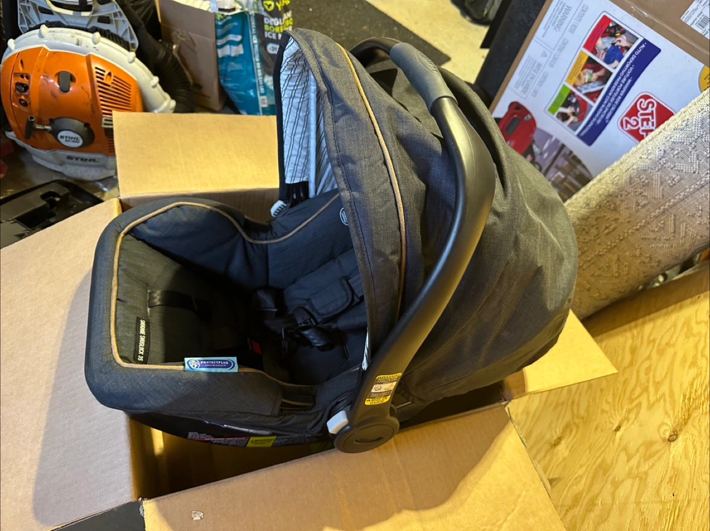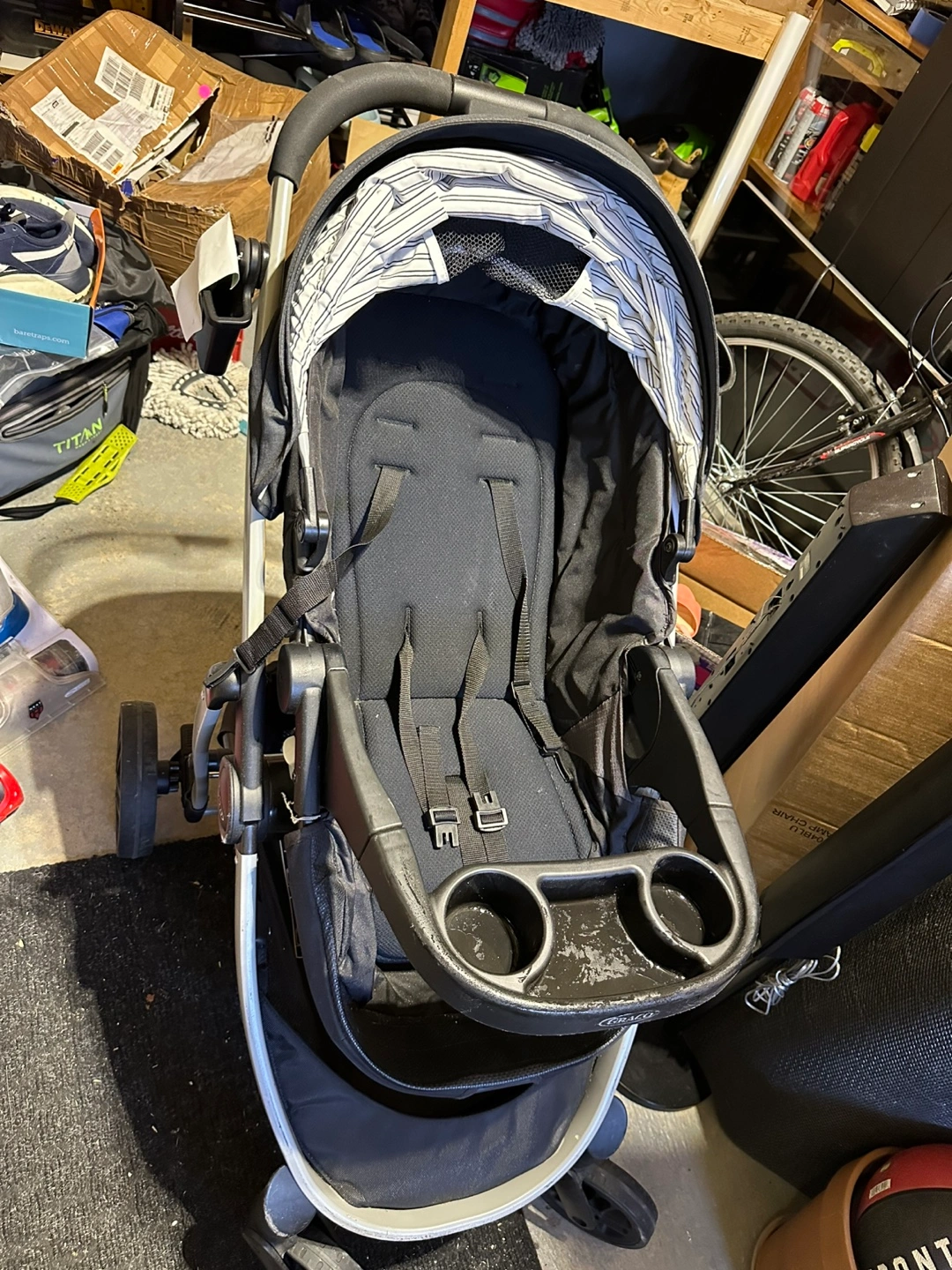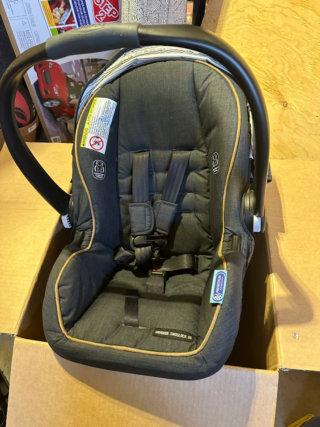 Selling a gently used Graco stroller and SnugRide SnugLock 35 car seat! This combo is perfect for getting around with your little one. The car seat is designed for safety and comfort. The stroller is easy to maneuver and has plenty of storage space for all your essentials. Both are in great condition and ready for a new home! NO DIAPER BLOW OUTS AT ALL!!! LOOKS BRAND NEW KEPT IN COVERED STORAGE AFTER USE Date of manufacture is Dec, 2021( which is good till 7 years after manufacture) INCLUDING WINTER COVER FOR CAR SEAT TO KEEP BABY WARM DURING WINTER AGAIN EXCELLENT CONDITION EVERYTHING IS WASHED AND VACUUMED BEFORE STORING