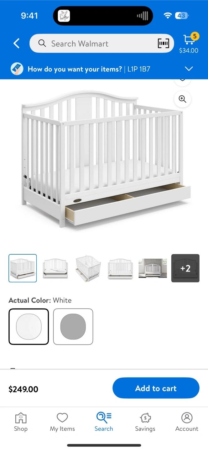 Selling a Graco baby crib in white! It has a convenient drawer underneath for extra storage Need gone ASAP Does have some dents Comes with mattress as well Will send photos when PMed