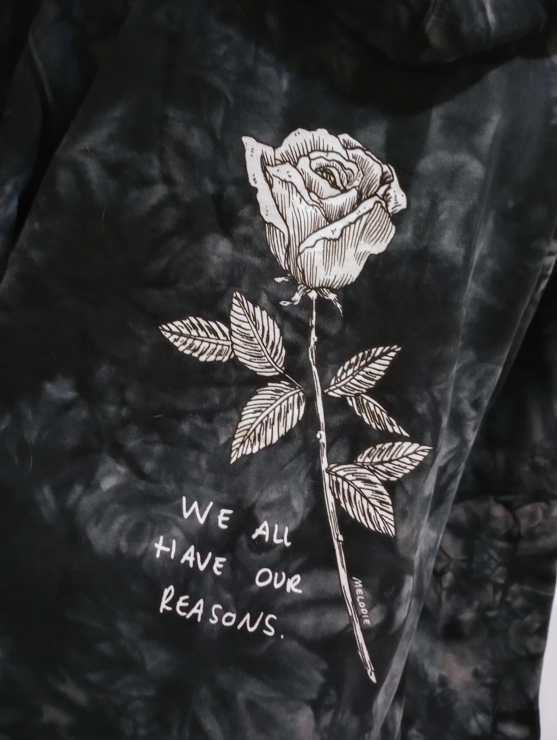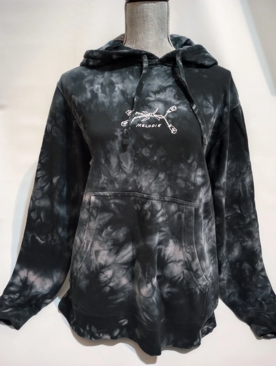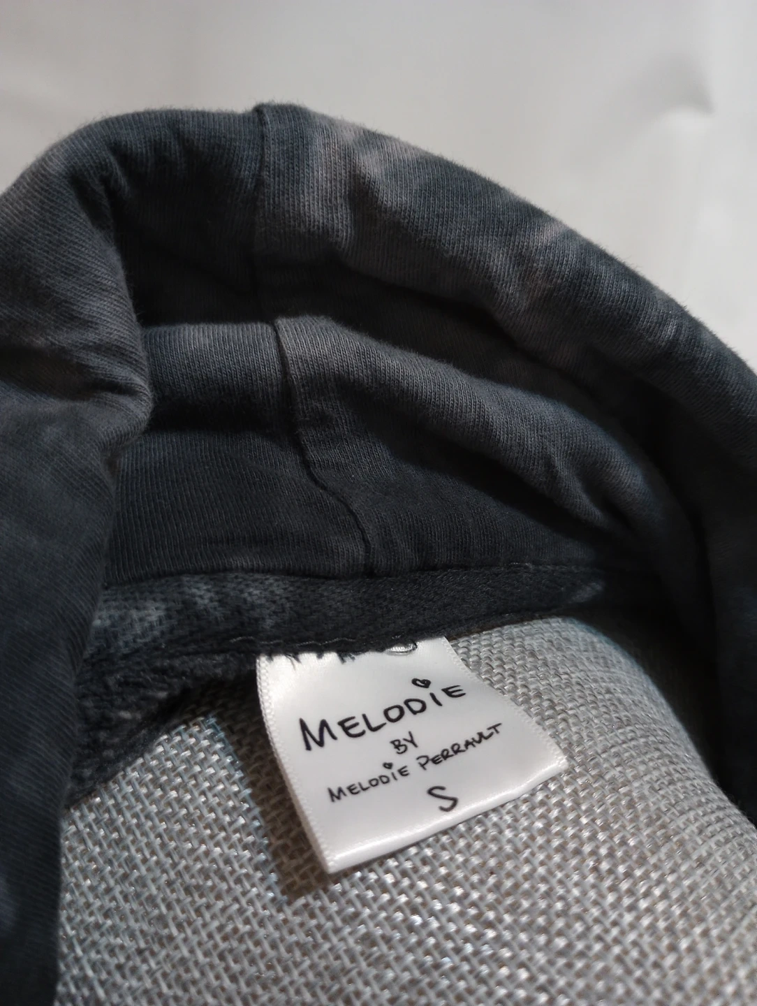 10Women's hoodie featuring a navy tie-dye pattern and white graphic design with a quote. Oversized fit. Great condition- no stains, piling, or loose threads.