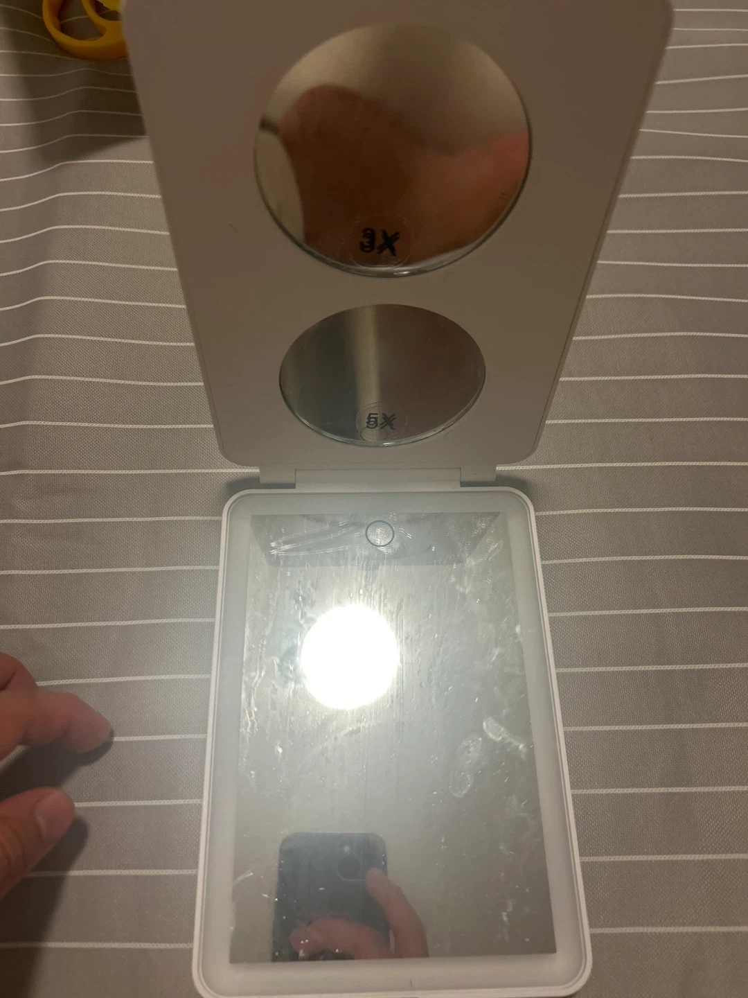Selling a Gravibay lighted makeup mirror! It's in great condition and perfect for getting ready anywhere. It features both 3x and 5x magnification mirrors to help with detail work. The built-in LED lighting provides even illumination for flawless makeup application. It's lightweight and portable, making it ideal for travel or everyday use