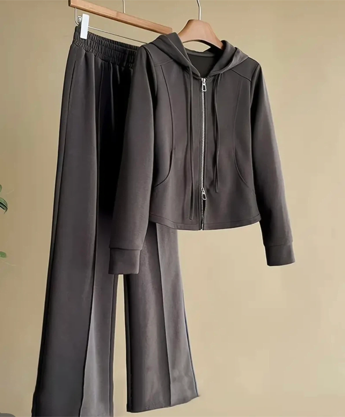 20Selling a matching set that includes a comfortable hoodie and stylish wide-leg pants! The set is a sleek gray color and would be a great addition to your wardrobe. Perfect for a casual day out or lounging at home