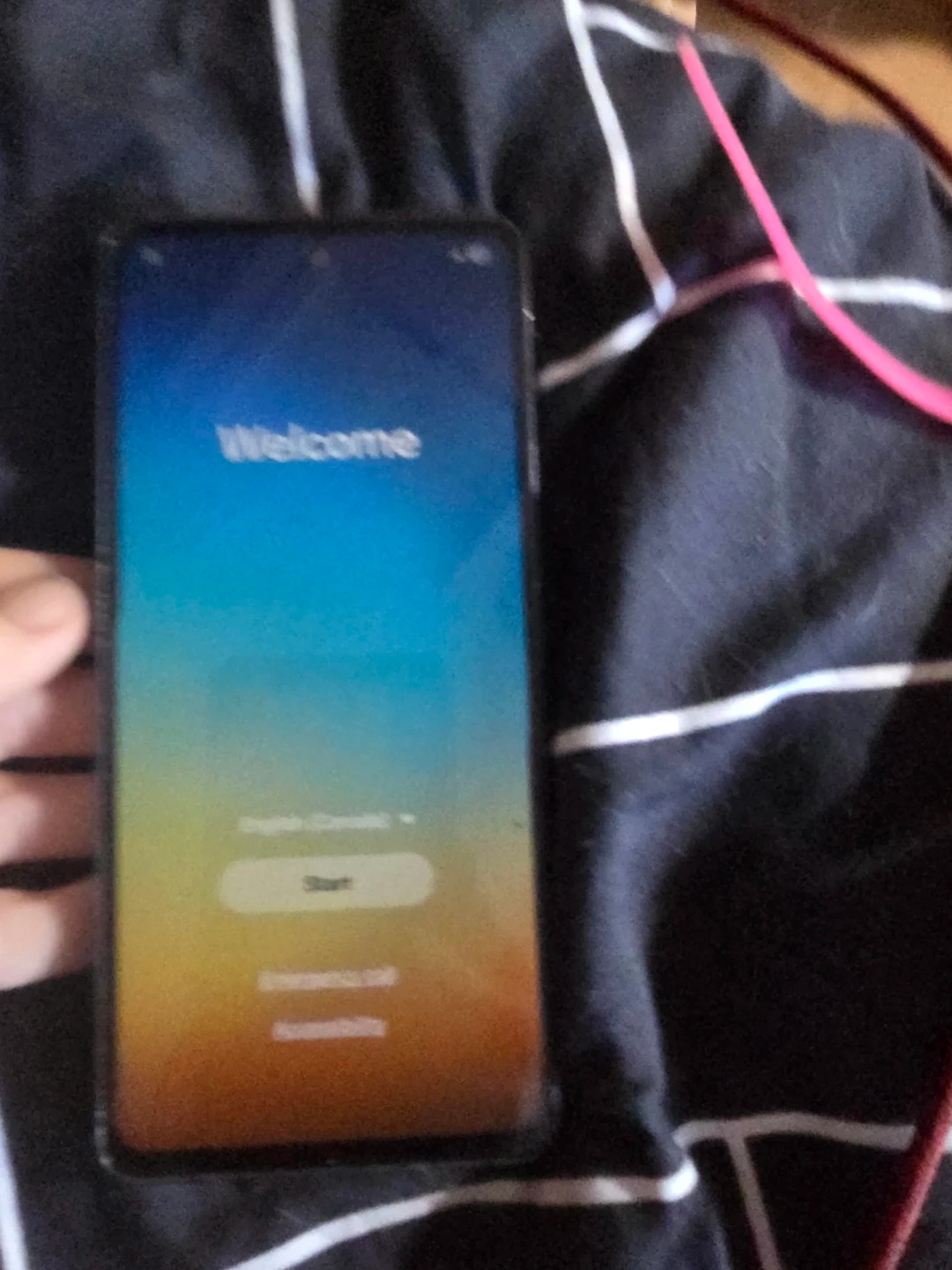 It has a large display and a triple camera system on the back. It's ready for setup with English (Canada) selected.