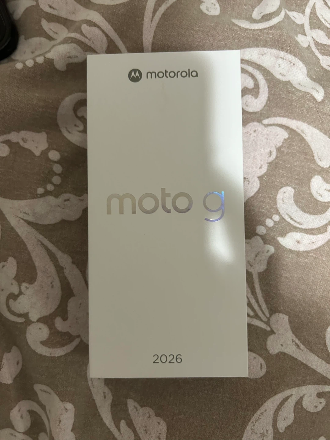 This is a new Motorola Moto G 2026 smartphone. It features 4GB of RAM and 128GB of storage. The colour is PANTONE Slipstream/Souffle cendré. The box is included.