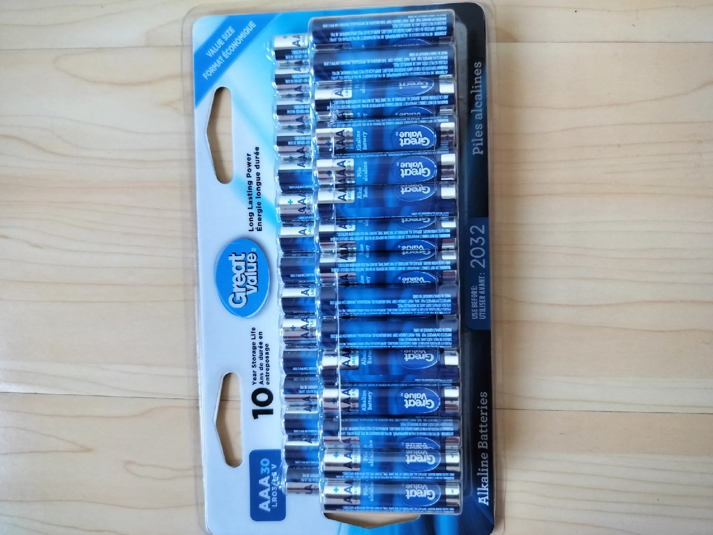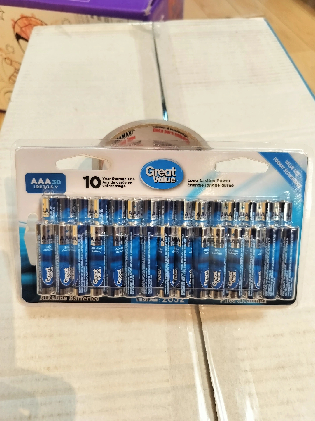Move out sale. Selling a brand new pack of Great Value AAA alkaline batteries! This value size pack contains 30 batteries. They have long-lasting power and a 10-year storage life. The 'use before' date is 2032. New - Never opened. Pick up location: 23 Cox Boulevard Markham.