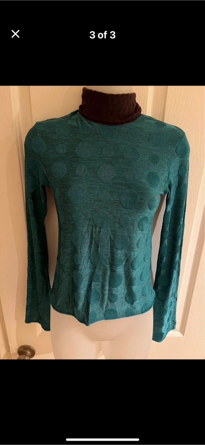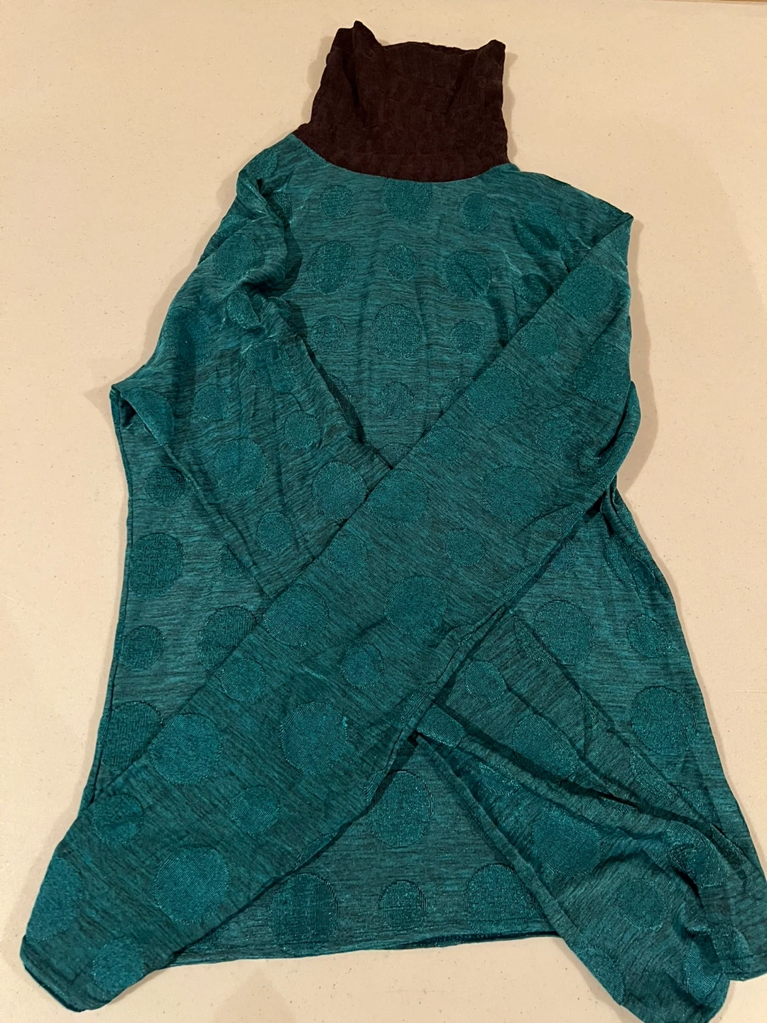 178A stylish long-sleeve top featuring a unique green and brown colour combination! The fabric has a subtle dotted pattern, adding a touch of elegance to the design