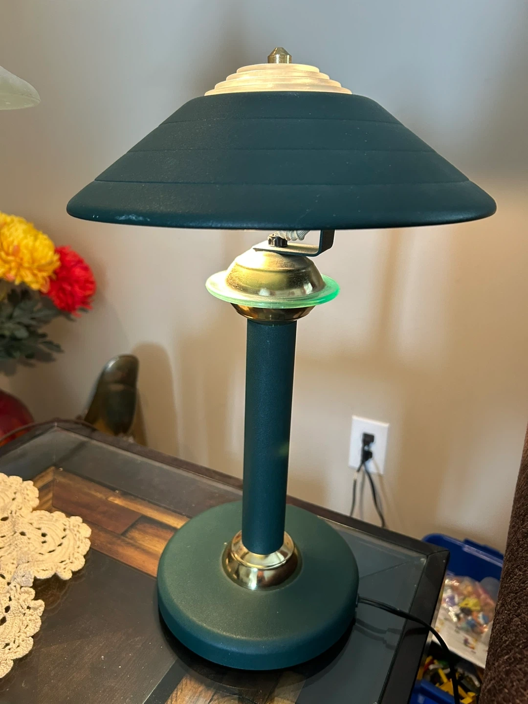 60Selling a lovely green desk lamp. It's in great condition and would look perfect on a desk or bedside table. The lamp has a unique design and provides a nice, warm light.