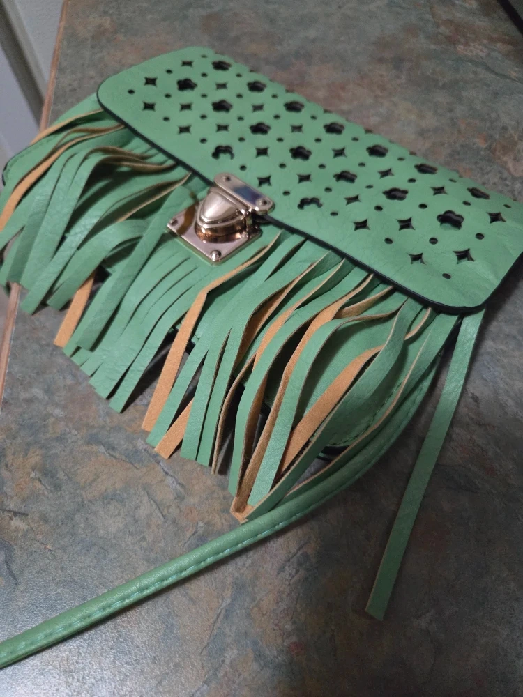 60Cute green crossbody bag with fun fringe detailing! It's in great condition and ready for a new home