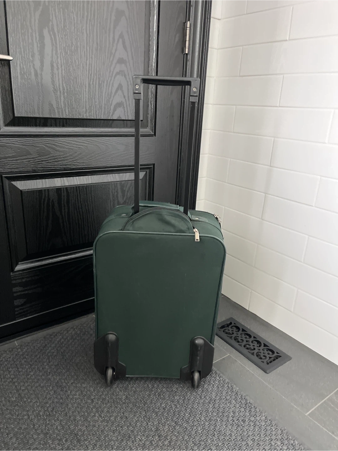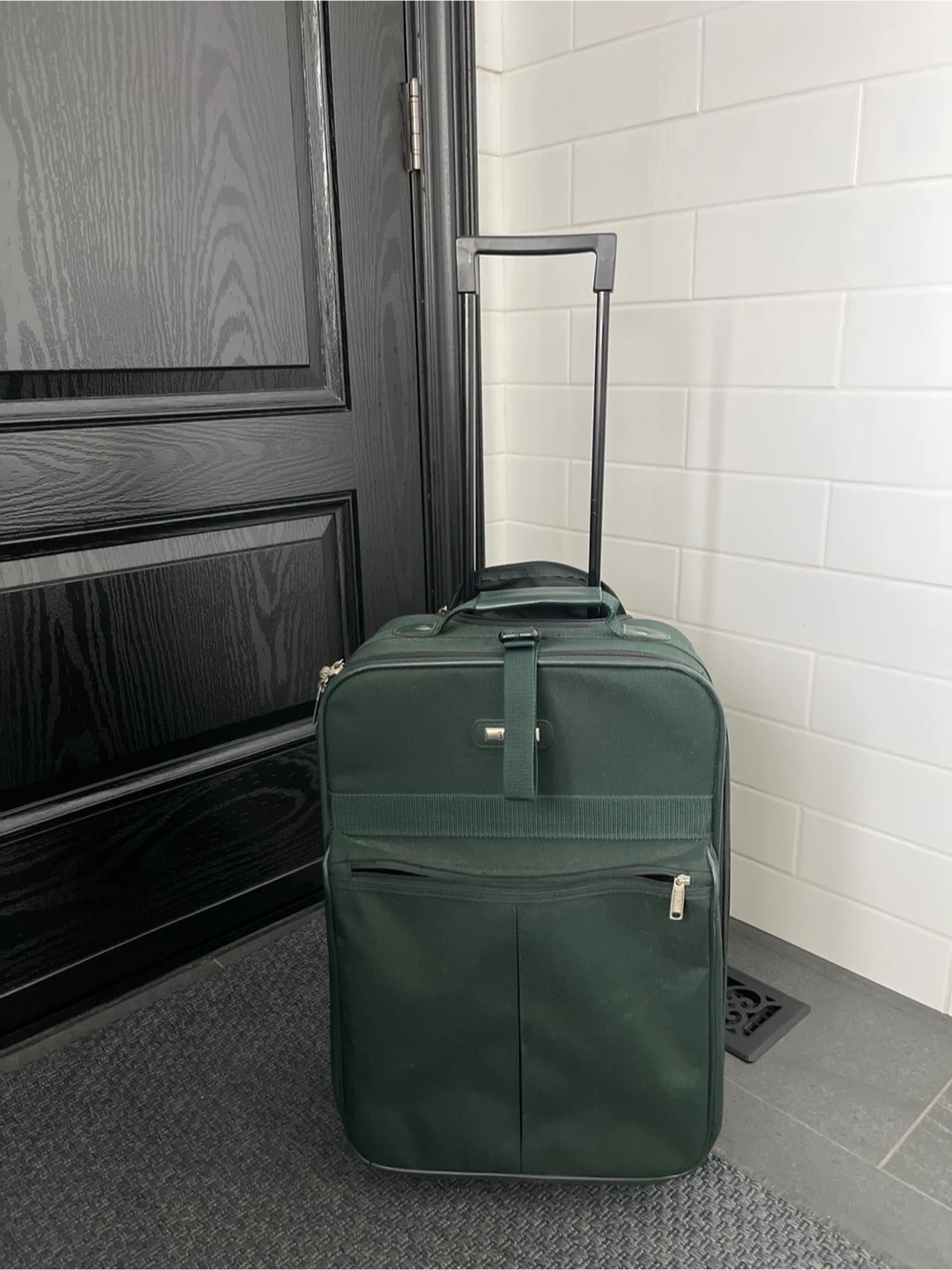 21Here's a green rolling suitcase that's ready for your next trip! It's in great shape and perfect for carry-on use or short getaways. Height 20 inches x Depth 7 inches x 13 1/2 width