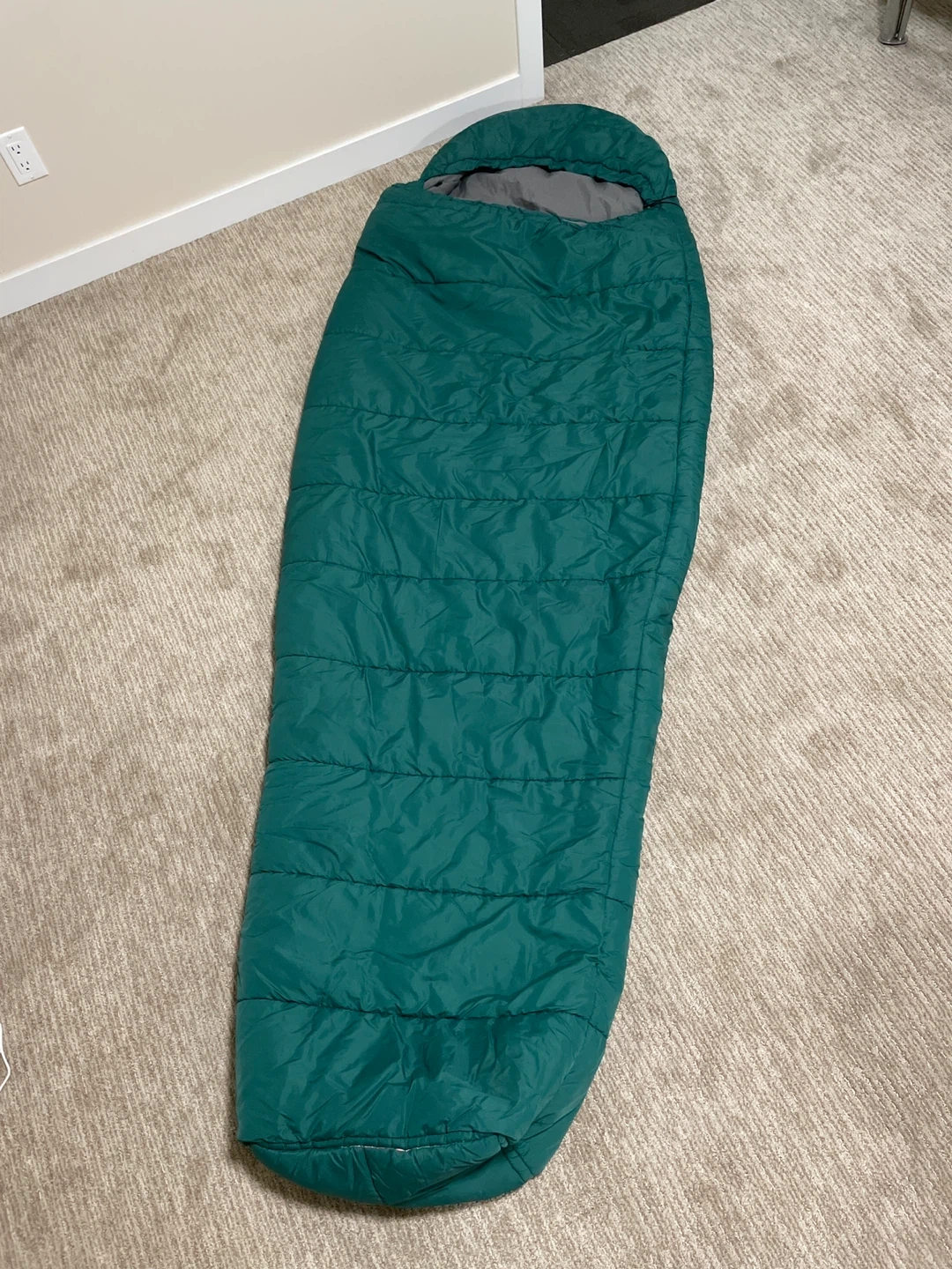 23Selling a green sleeping bag. It's in great shape and ready for your next camping adventure! Perfect for staying warm on those chilly nights outdoors