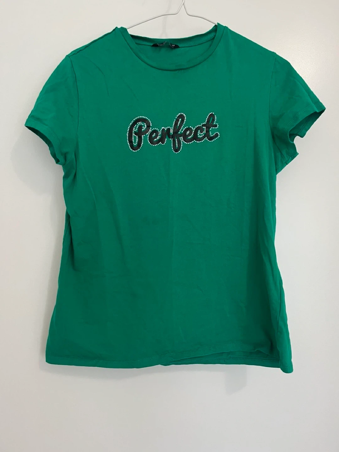10A cute green t-shirt with the word "Perfect" on the front. It's in great condition and ready for a new home!
