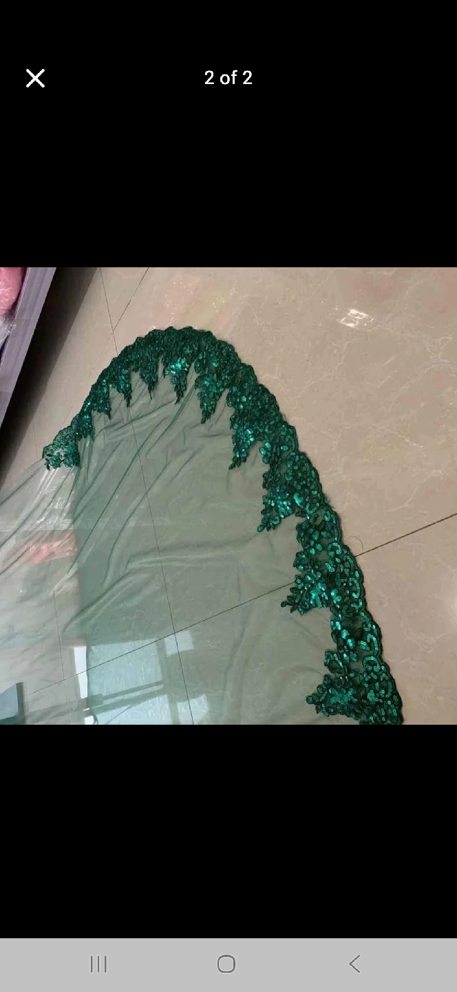 60Here's a beautiful green wedding veil, perfect for adding a touch of colour to your special day! It features lovely detailing around the edges.